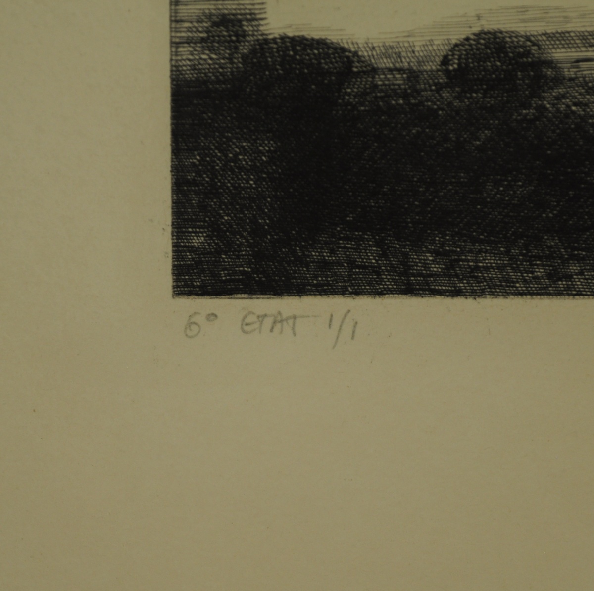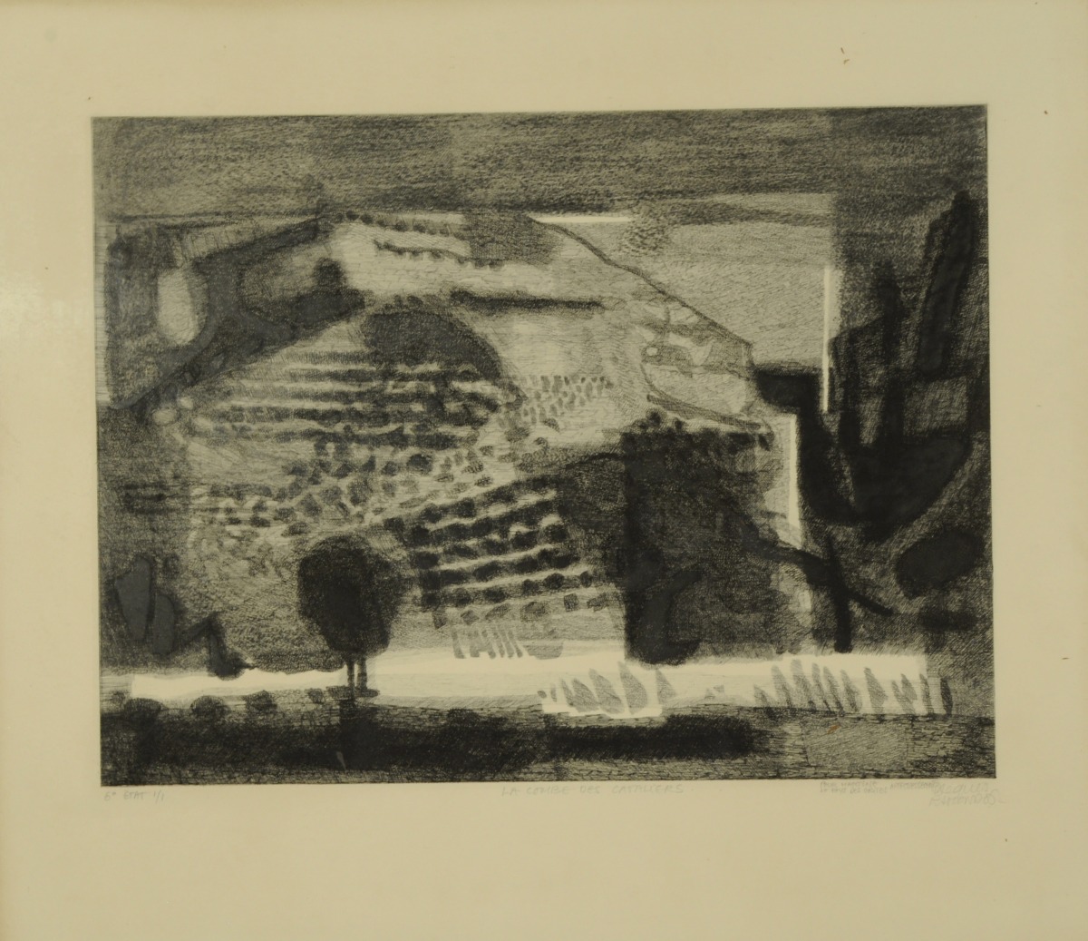 Lithographie, signée en bas à droite, titrée au centre, justifiée "6° ETAT 1/1" en bas à gauche et dédicacée "Pour Martine affectueusement le pays des grives".