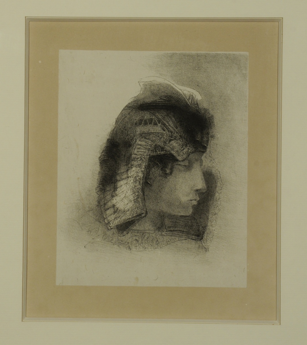 Odilon REDONPortrait d'homme à la coiffe orientale.Estampe.20 x 16 cm.