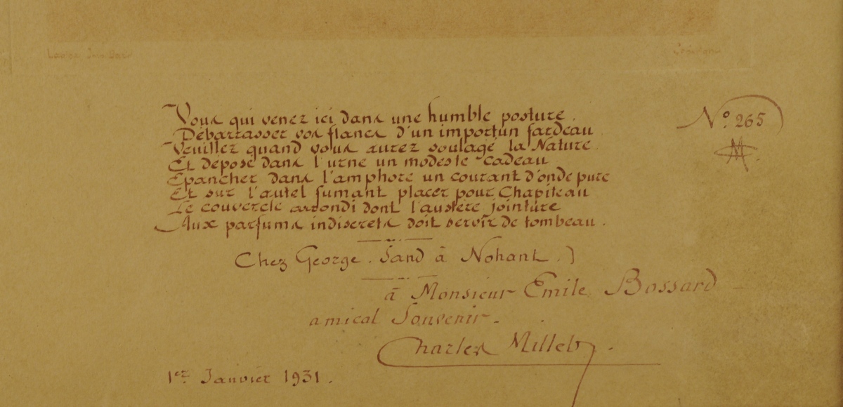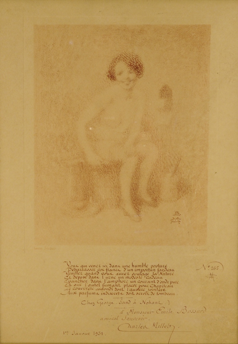 Lithographie à l'imitation de la sanguine signée "CM" et numérotée 265 en bas à droite. Datée 1er janvier 1931 en bas à gauche. Envoi de l'artiste à Monsieur Émile Bossard.