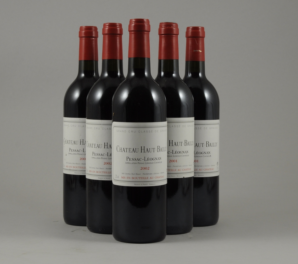- Château Haut-Bailly 2002. Grand Cru Classé. 3 bouteilles Etiquettes en parfait état. Niveaux : 16 19 mm.