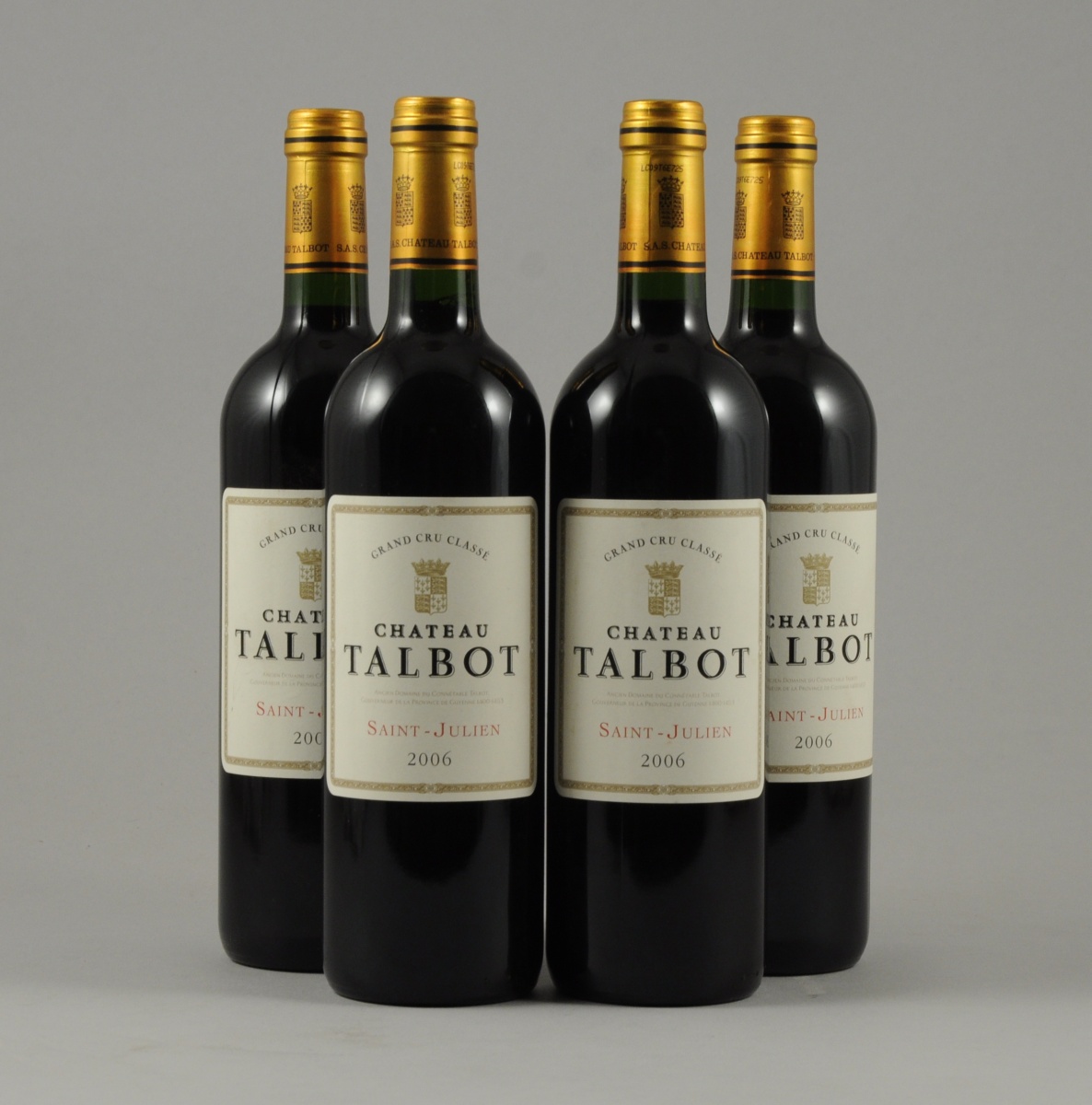 SAINT-JULIEN, Château Talbot, Grand Cru Classé, 2006. 4 bouteilles, Etiquette arrière abimée.