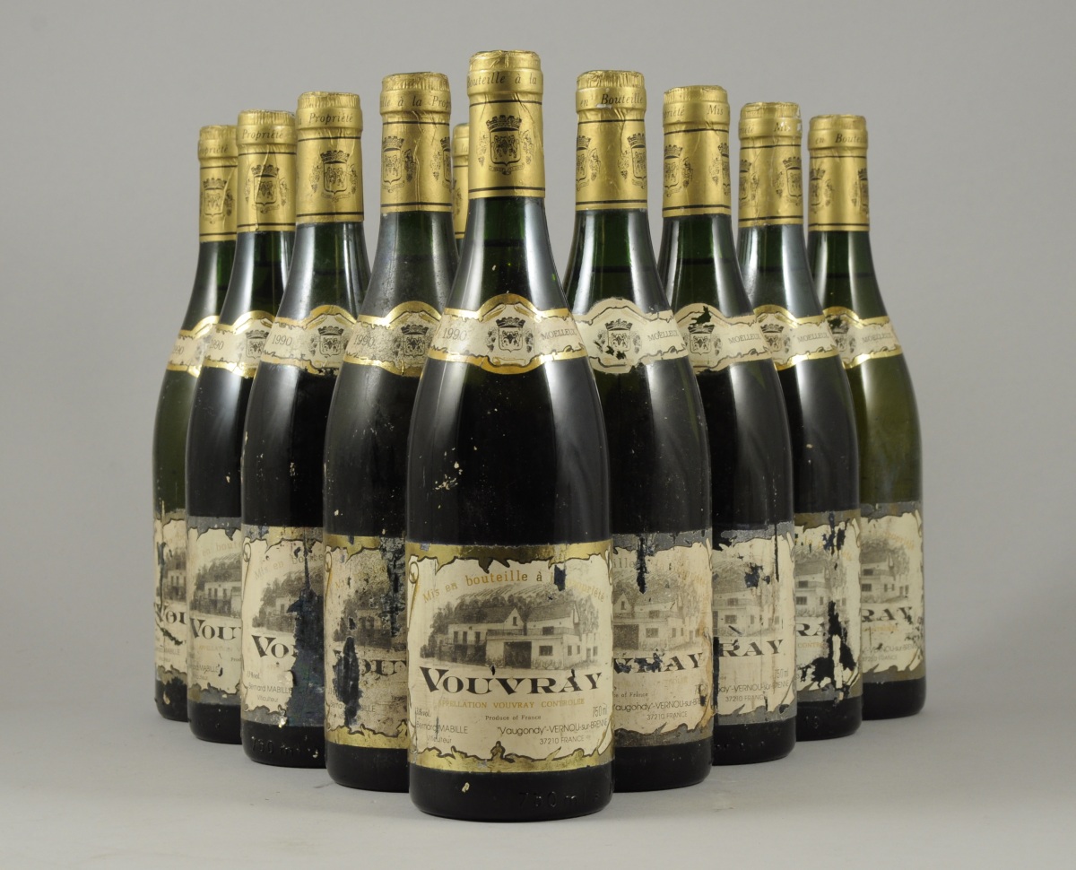 VOUVRAY moelleux, " Vaugondy " Vernou sur Brenne, 1990. 10 bouteilles. Etiquettes endommagées.