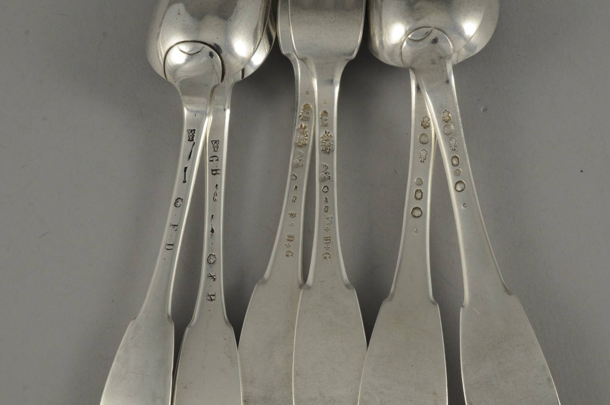 -2 PAIRES de CUILLÈRES aux Fermiers Généraux : Paris, 1762-1768, Maître-Orfèvre : Jacques Anthiaume, reçu en 1758; et Paris 1789.