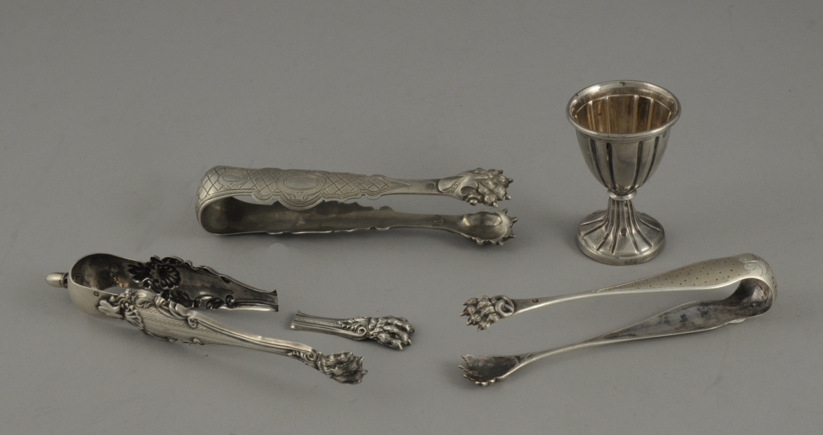 Lot de 5 PIÈCES de petite ARGENTERIE :-PINCE À SUCRE...