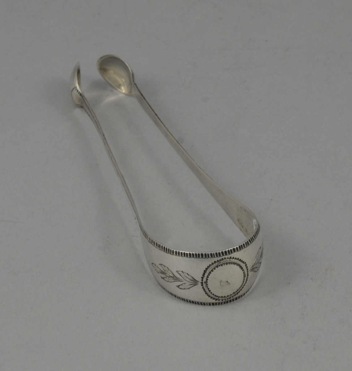 PINCE À SUCRE en argent. Décor ciselé et gravé de feuillages.