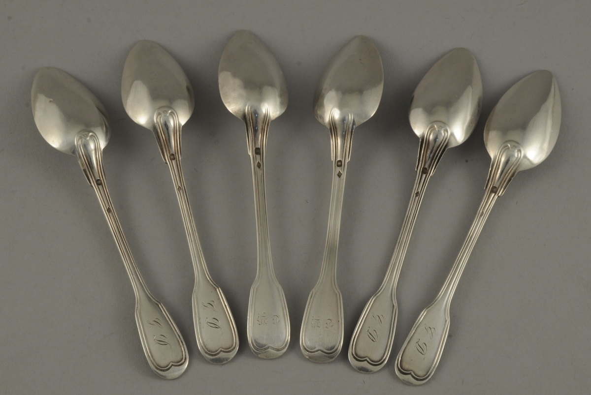 Série de 6 CUILLÈRES À CAFÉ, d'un même modèle à filet contour.