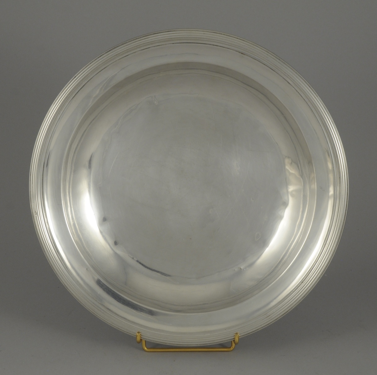 PLAT CREUX de forme ronde en argent. Bordure à filets.