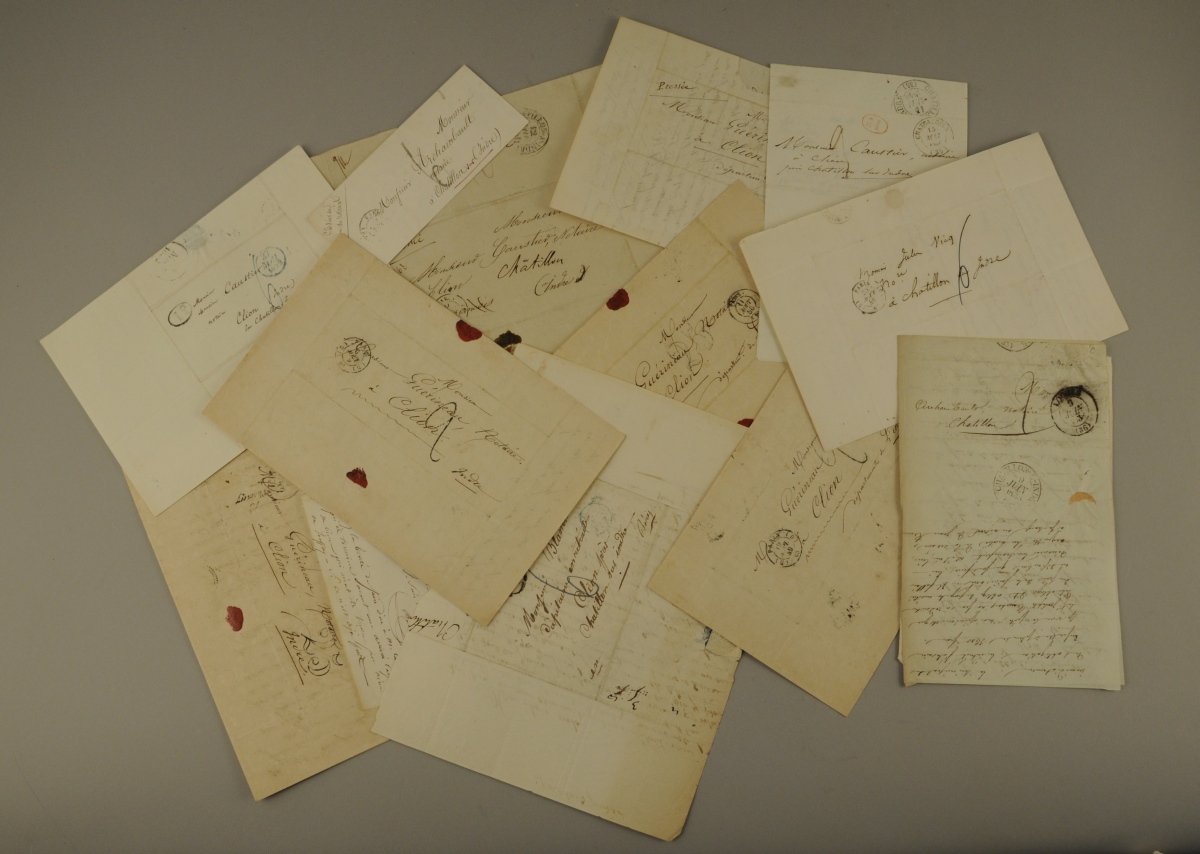 1 chemise avec 140 MARQUES POSTALES, COTE FORTE.