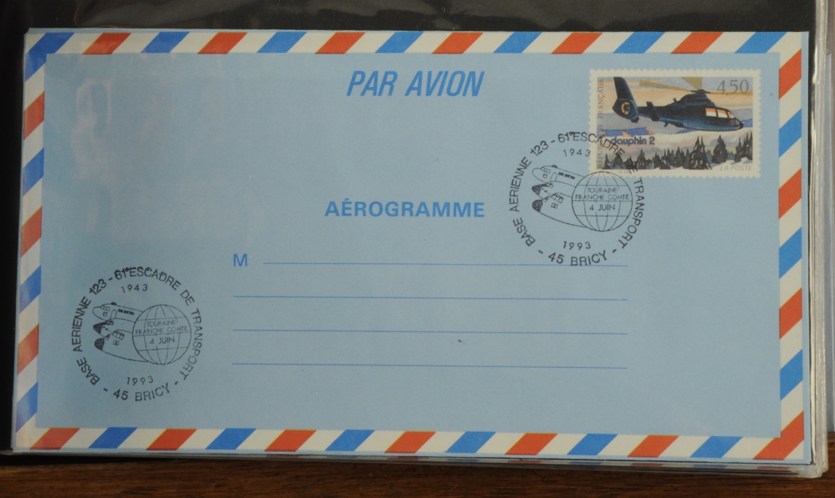 FRANCE. 14 classeurs + 1 boîte d'oblitération diverses sur AEROGRAMMES, entiers.