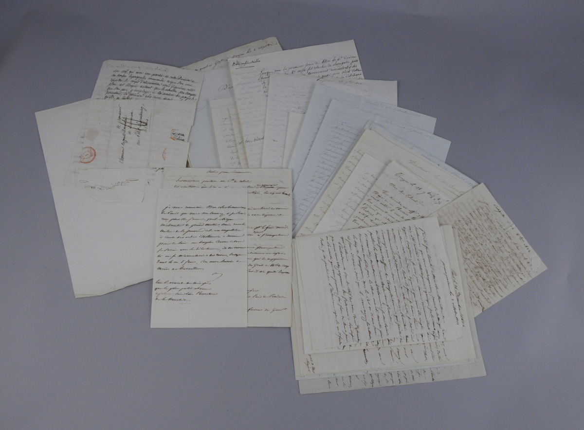 GUERRE D'ESPAGNE. Intéressant ensemble de lettres, notes et instructions adressées au colonel comte de Sesmaisons, sous-chef de l'état-major du maréchal de LAURISTON pendant la guerre d'Espagne, avec qqs minutes de réponse : François-Étienne de DAMAS, Charles de DAMREMONT, comte d'ESCHALLARD (2), général GUILLEMINOT (2), maréchal de LAURISTON (7), Hippolyte de MANSIAUX, comte d'ORSAY, Louis PARTOUNEAUX (2), SAINT-CYR NUGUES, etc.