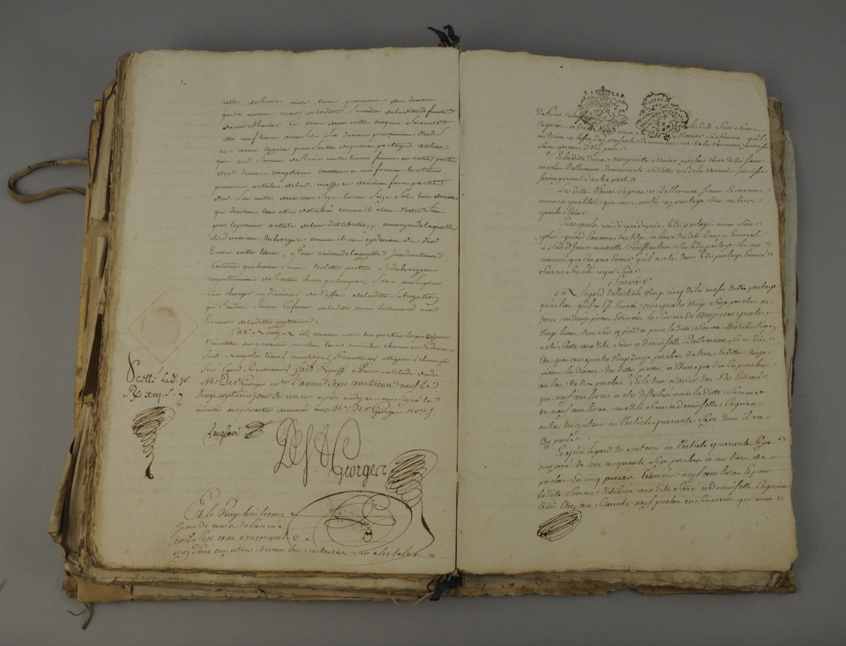 MANUSCRITS. ACTES NOTARIÉS. Fond d'archives de la famille Lallemant, premier huissier audiencier au Chatelet.
