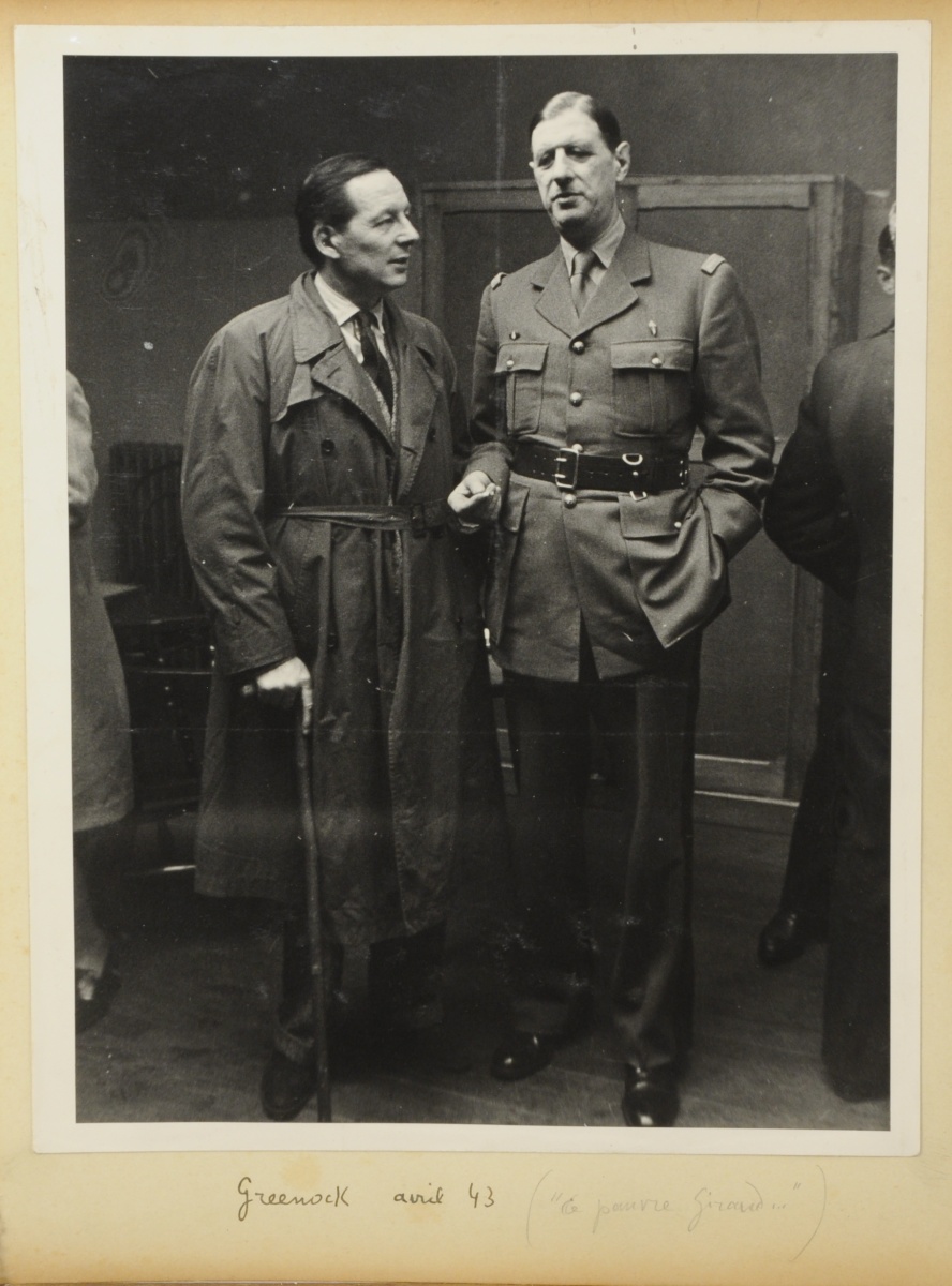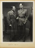 -Superbe photographie de de Gaulle et Jean Oberlé (250 X 190 mm), avec la mention manuscrite "Greenock avril 1943", et, entre parenthèses "Le pauvre Giraud".