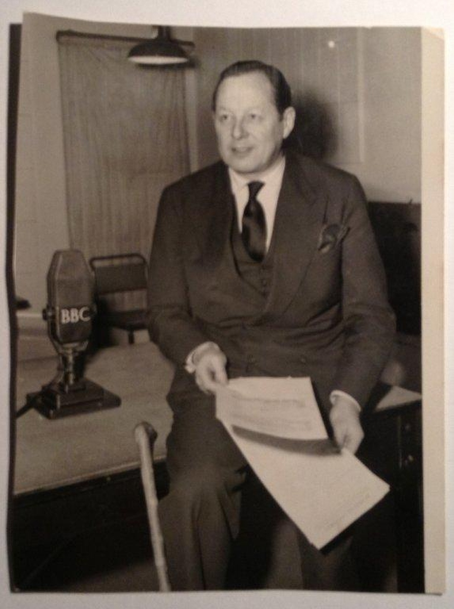 Ensemble de 26 photographies de formats divers, pour la plupart pendant le séjour à Londres de Jean Oberlé, retraçant en particulier ses activités à l'émission de la BBC "Les Français parlent aux Français" :