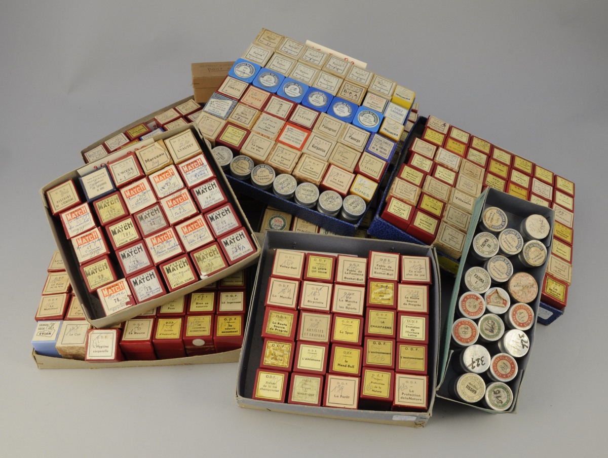 LOT d'environ 350 FILMS, la majorité "O.D.F", dont "Grandes Réalisations Françaises", "Histoire de l'Écriture", "Artistes et Crayons", "Poissons d'eau de mer" et divers. Dans leurs boîtes. Début et milieu XXème.