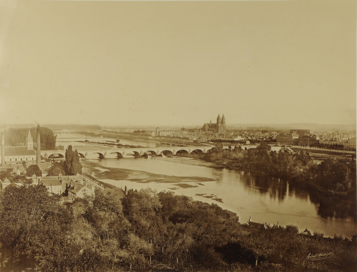 Installé 38, rue Royale puis 6, rue de la Préfecture, Gabriel Blaise est Le photographe tourangeau entre 1860 et 1889. Il photographie toute la société de l'époque. Ses portraits au format carte postale sont encore conservés par les familles de Touraine. Pendant "l'investissement de Paris" par les troupes allemandes en 1870, c'est lui qui, sous la direction de Gambetta, reproduit photographiquement toutes les dépèches qui sont ensuite envoyées par pigeons voyageur depuis Tours. Cette vue de Tours depuis les hauteurs de Saint-Cyr-sur-Loire est le témoignage de ce que fut la plus belle entrée de ville de France, construite sous le règne de Louis XV, avant les bombardements de 1940.