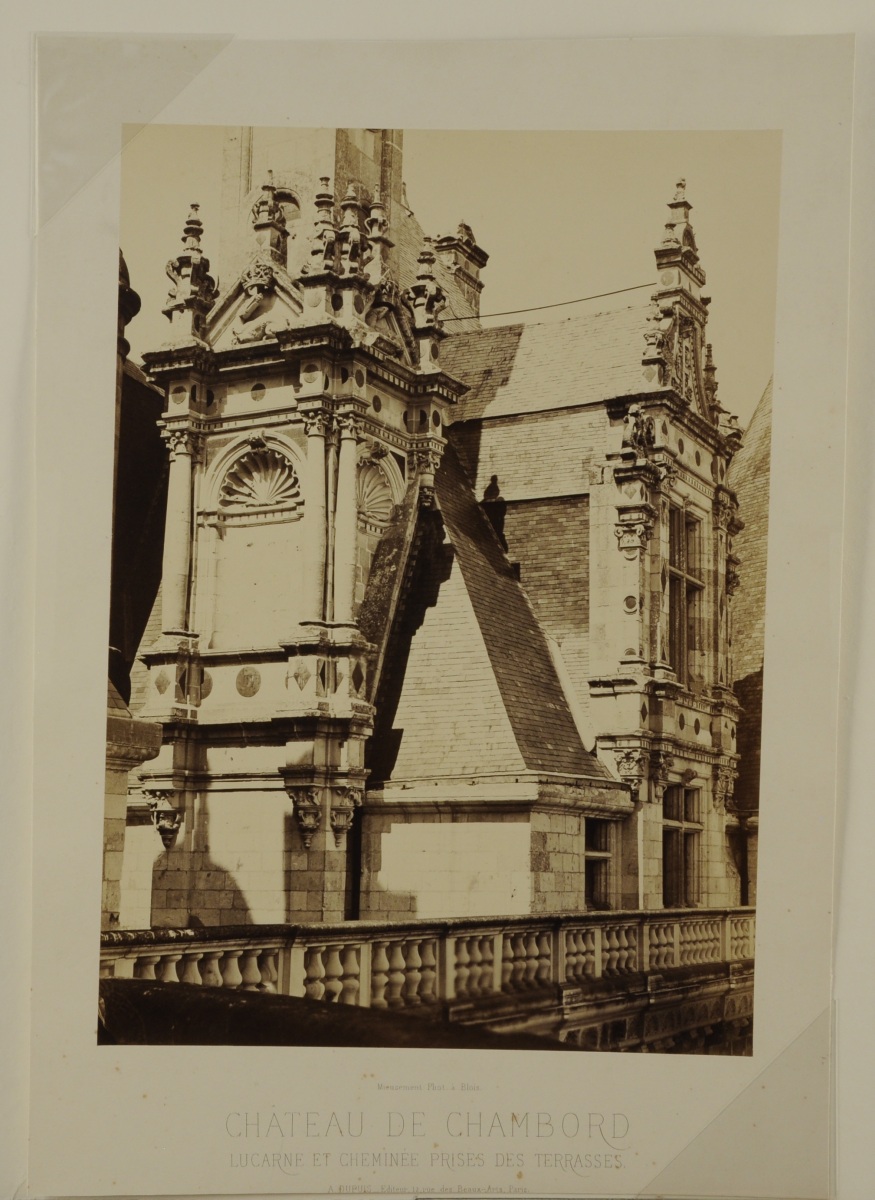 - " CHÂTEAU DE CHAMBORD / LUCARNE ET CHEMINÉE PRISES DES TERRASSES. / A. DUPUIS - Éditeur, 12, rue des Beaux-Arts, Paris. " (33,5 x 24 cm)