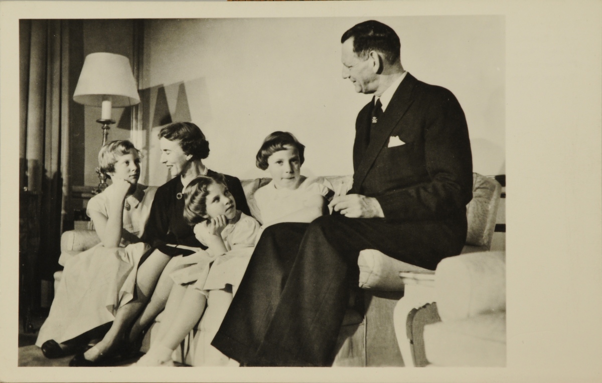 - Le Roi Frederic IX, la Reine Ingrid et les princesses Margrethe, Benedikte et Anne-Marie enfants. Vers 1950. 9 x 13,5 cm.