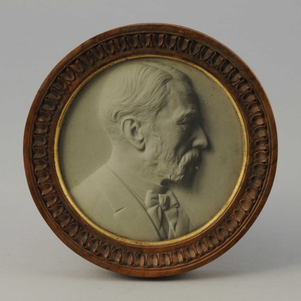 LE COMTE FERNAND DE RESSÉGUIER. Photographie de format circulaire représentant en buste de profil. Cadre en noyer mouluré et sculpté de rais de coeur et en partie doré. Fin XIXème - début XXème.