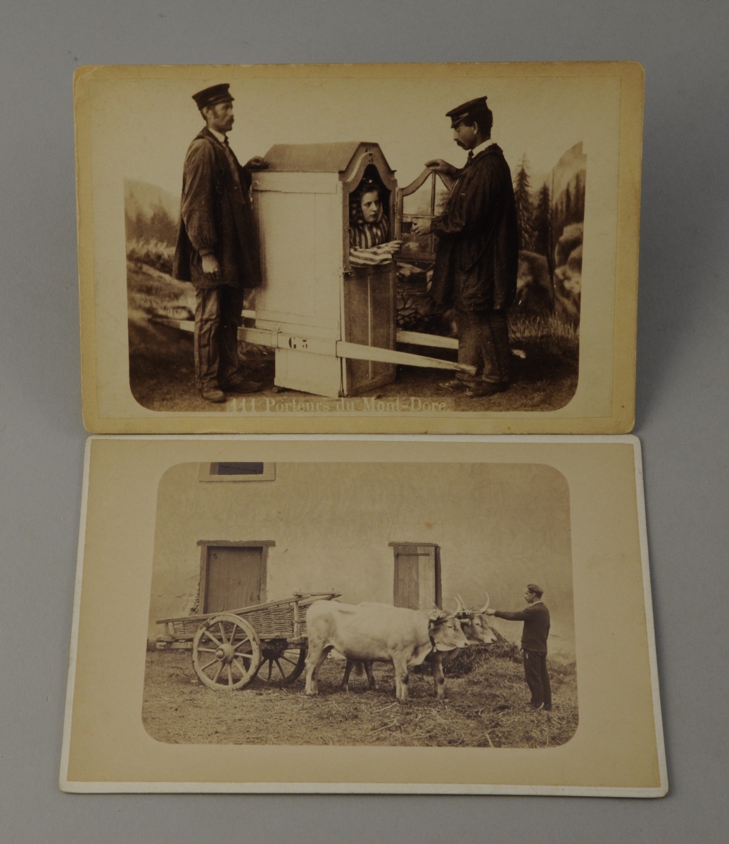 JOINT : Ferdinand BERILLON (actif entre 18163 et 1890). Charette à bufs. Tirage contrecollé sur papier fort. Fin du XIXème. 10,2 x 16 cm.