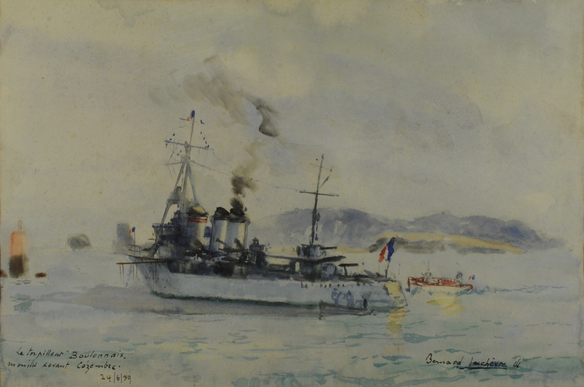 Bernard LACHÈVRE (Le Havre, 1885 - Honfleur, 1950)." Le torpilleur...