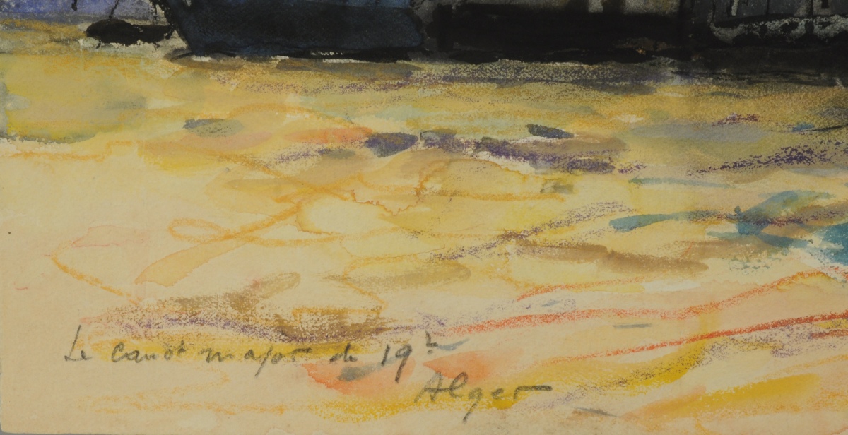 Aquarelle, pastel et rehauts de gouache, signé en bas à droite et titrée en bas à gauche. Titré et numéroté " 52 " au dos.