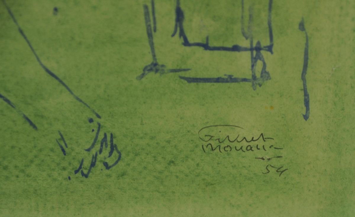 Gouache sur papier, signée et datée "54" en bas à droite.