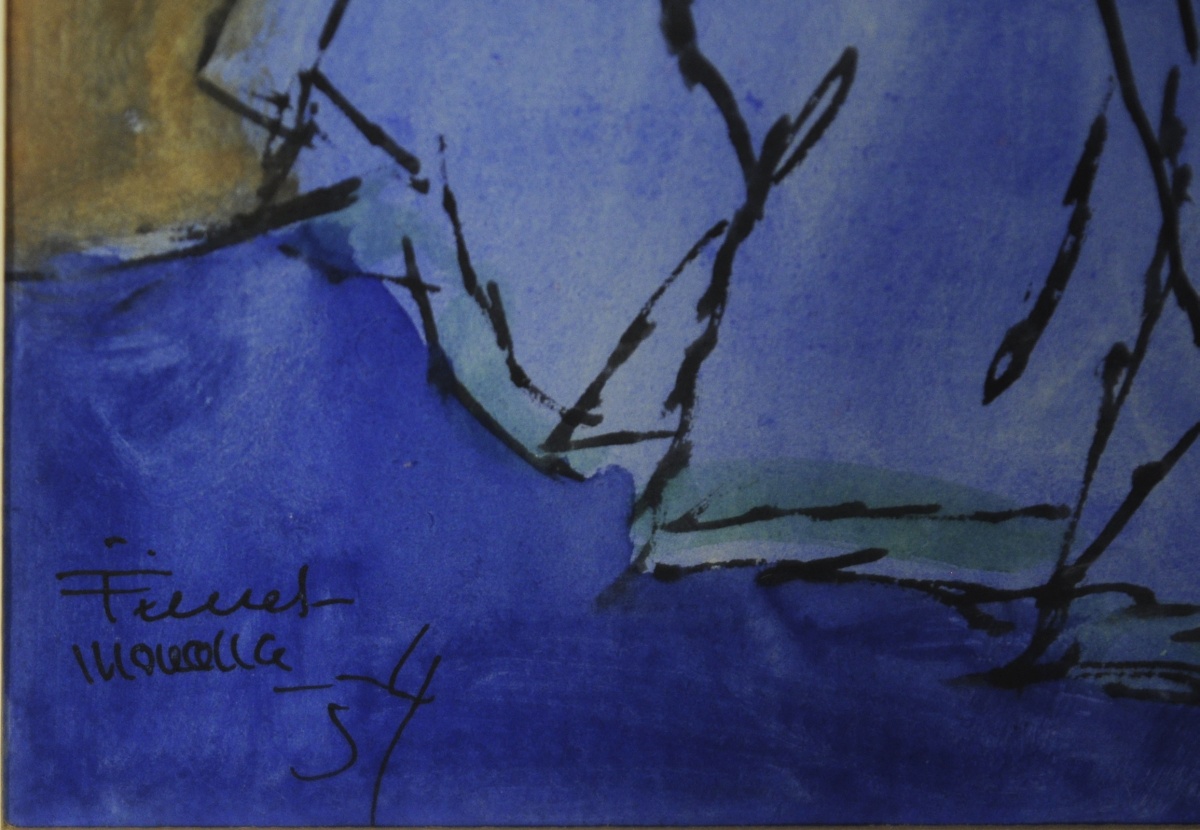 Gouache sur papier, signée et datée "54" en bas à gauche.