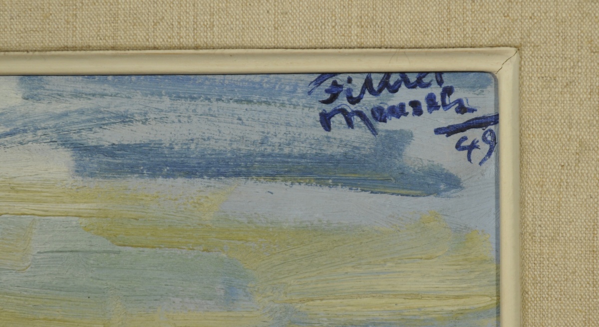 Huile sur isorel, signée et datée "49" en haut à droite.