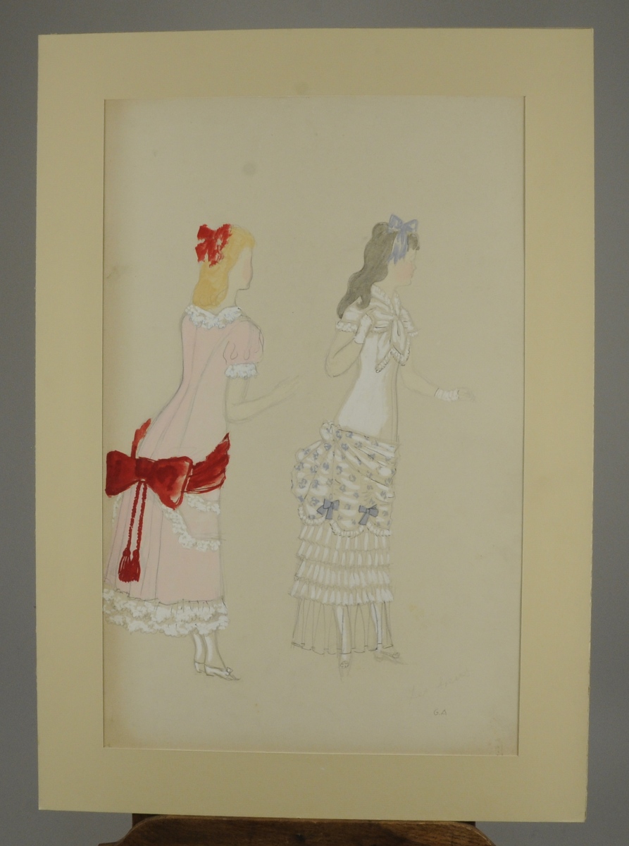 Crayon, aquarelle et gouache, monogrammé en bas à droite, numéroté 58 et annoté "Les Soeurs".