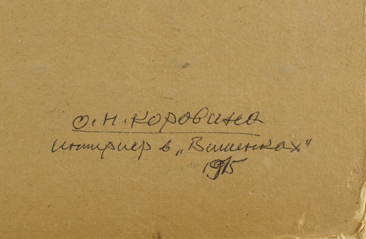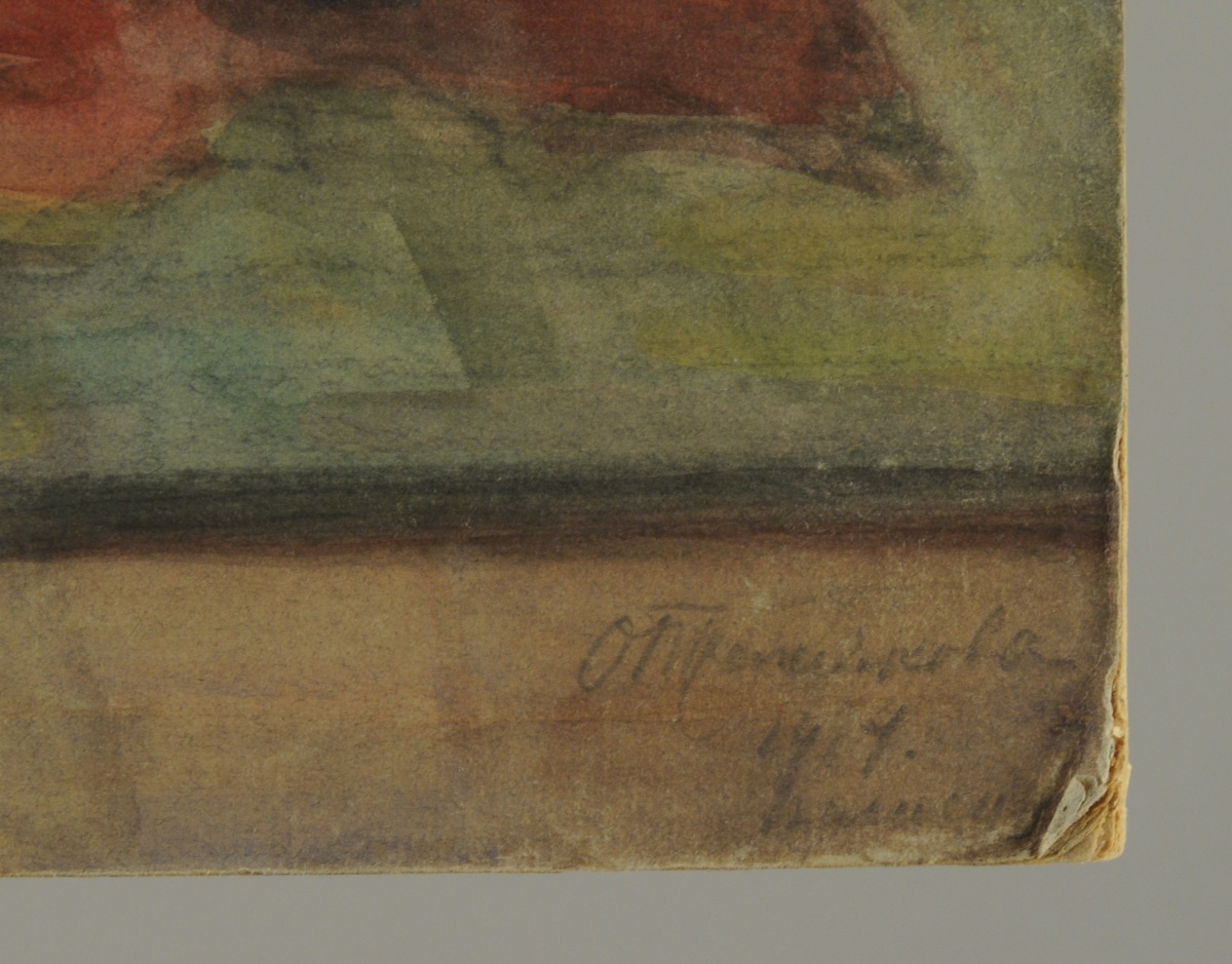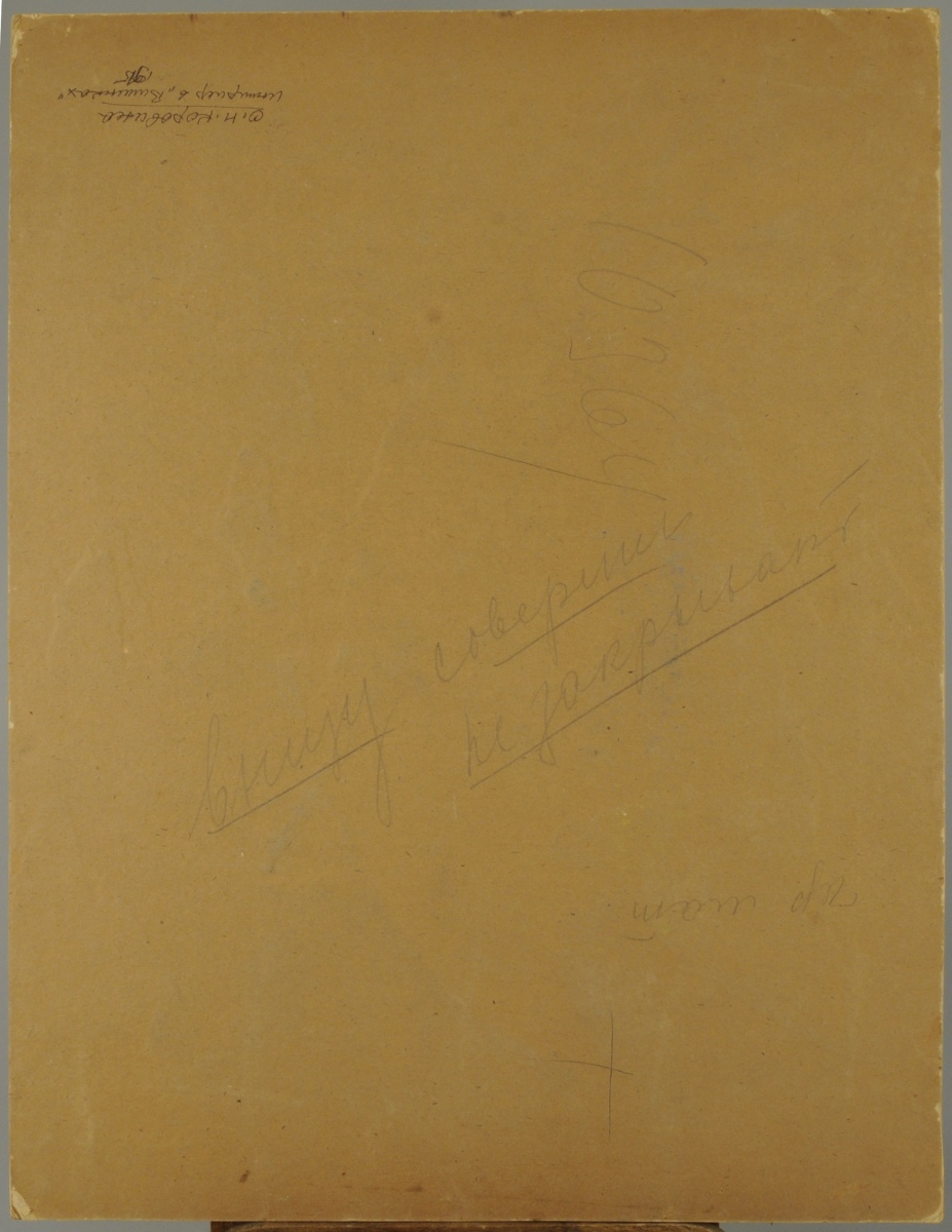 Crayon, aquarelle et gouache sur papier marouflé sur carton, inscription en cyrillique au crayon en bas à droite, daté 1919. Inscription en cyrillique à l'encre au dos.