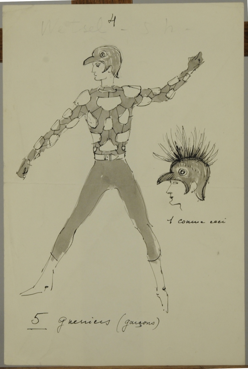 Joint : Cinq études de MASQUES et COSTUMES. Encre noire, annotés. 21 x 13,5 cm. (usures)