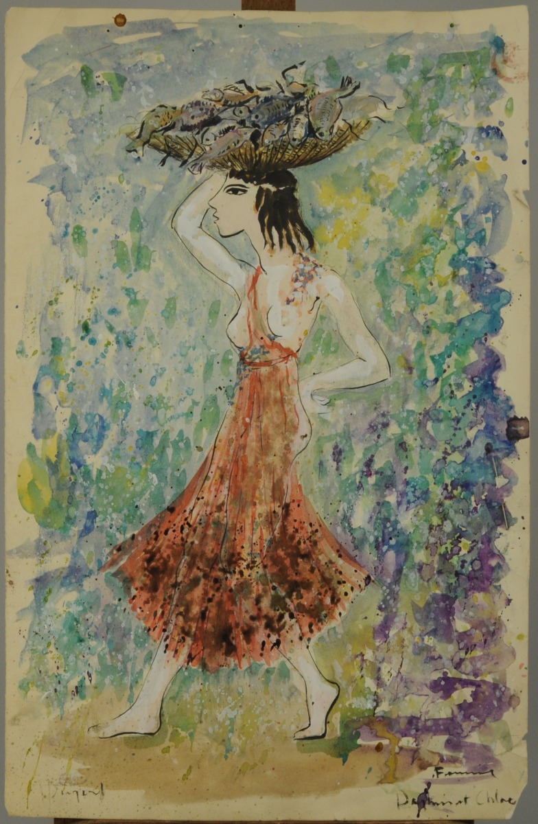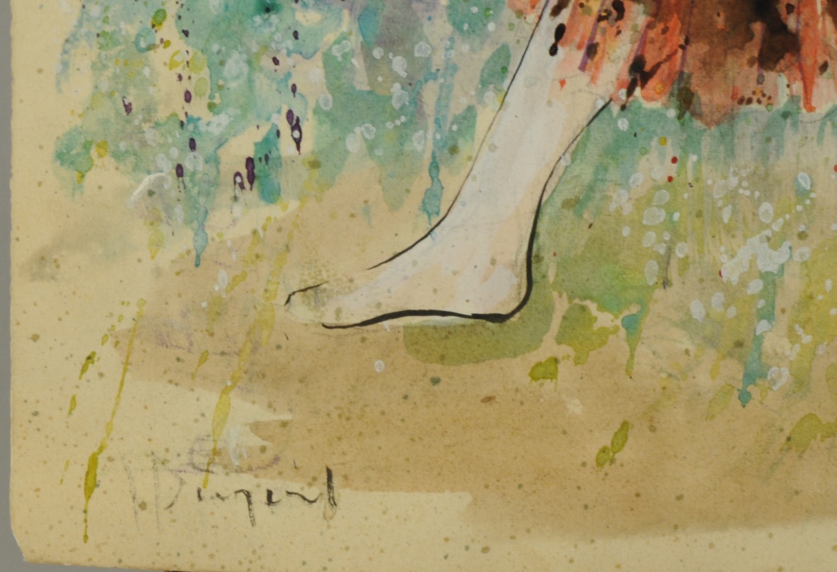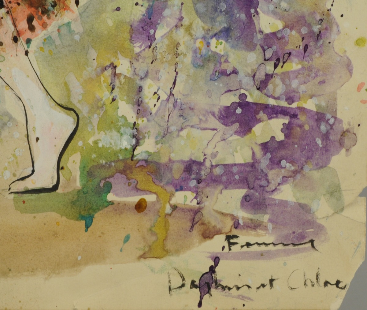 Aquarelle et gouache sur papier, signée en bas à gauche et titrée "Femme / Daphnis et Chloé" en bas à droite. Numérotée au crayon au dos "7".