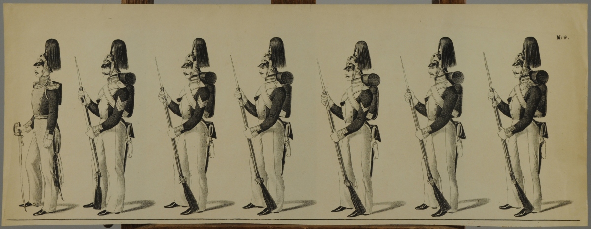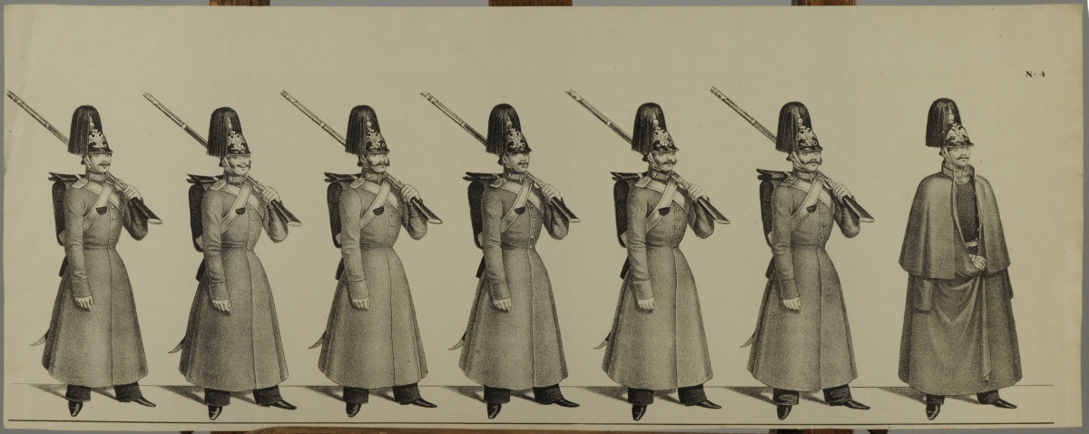MILITAIRES et GUERRIER ORIENTAL.Quatre gravures, annotées en vieux slavon. Certaines...