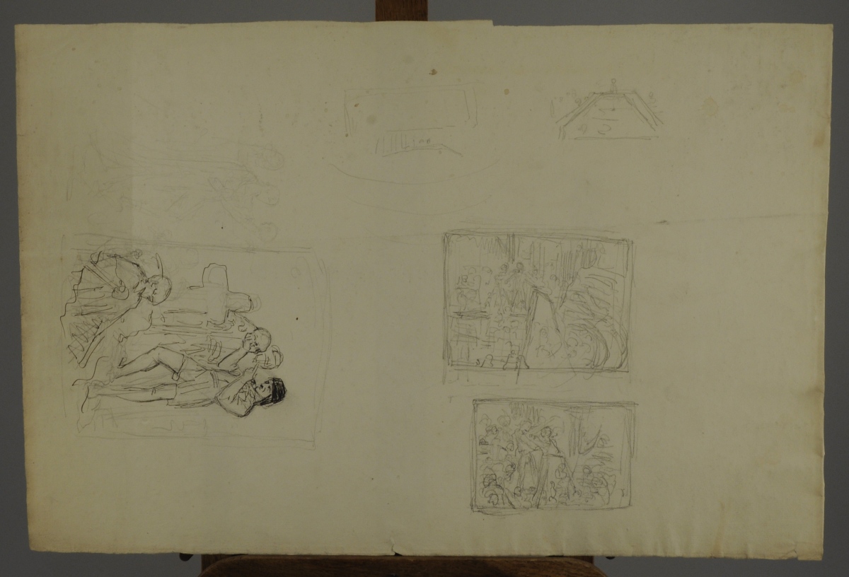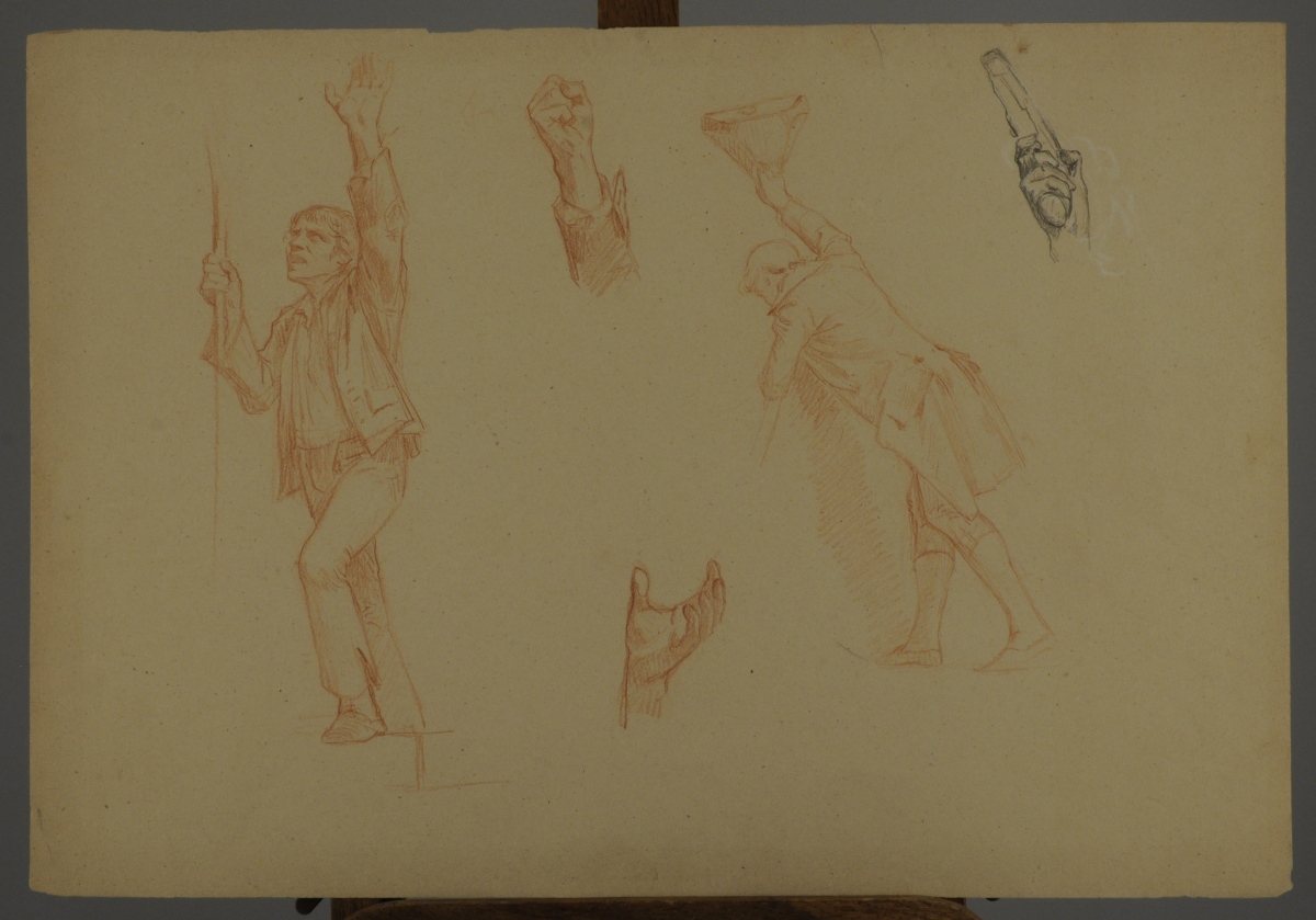 Études. 7 feuilles. 6 sanguines et 1 crayon sur papier, l'une annotée "Lanjuinais", l'une portant une marque au tampon "Oeuvres de Ch. L. MULLER".