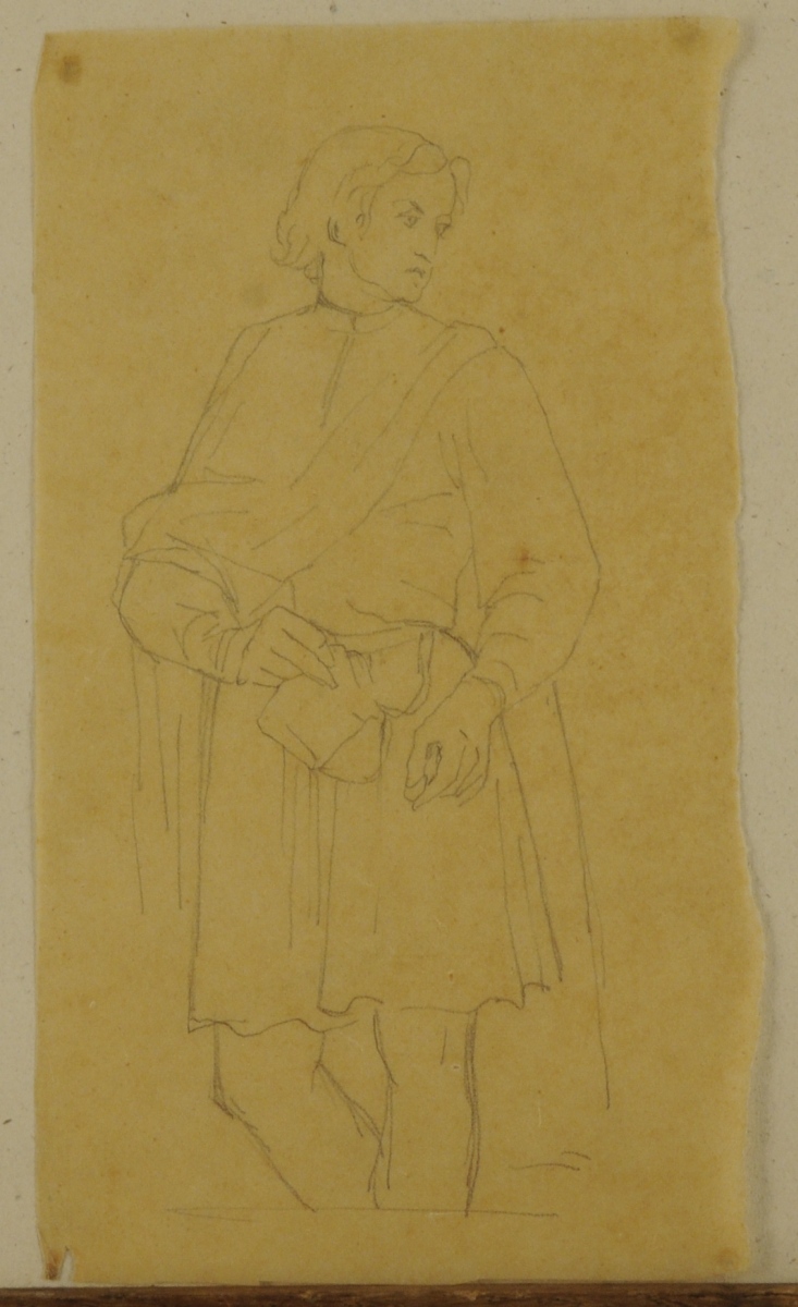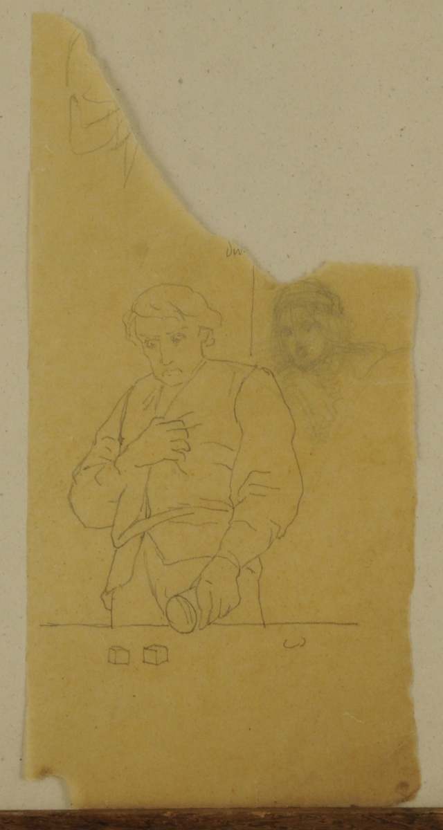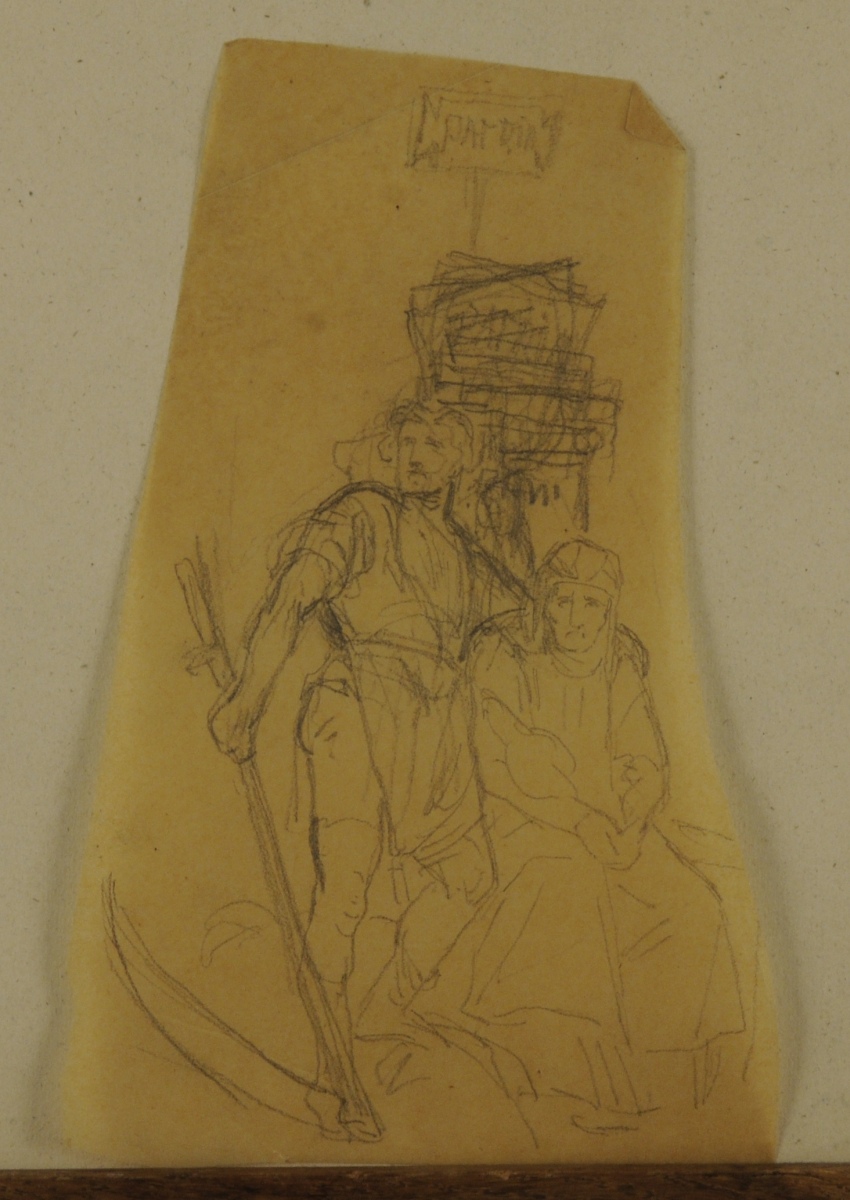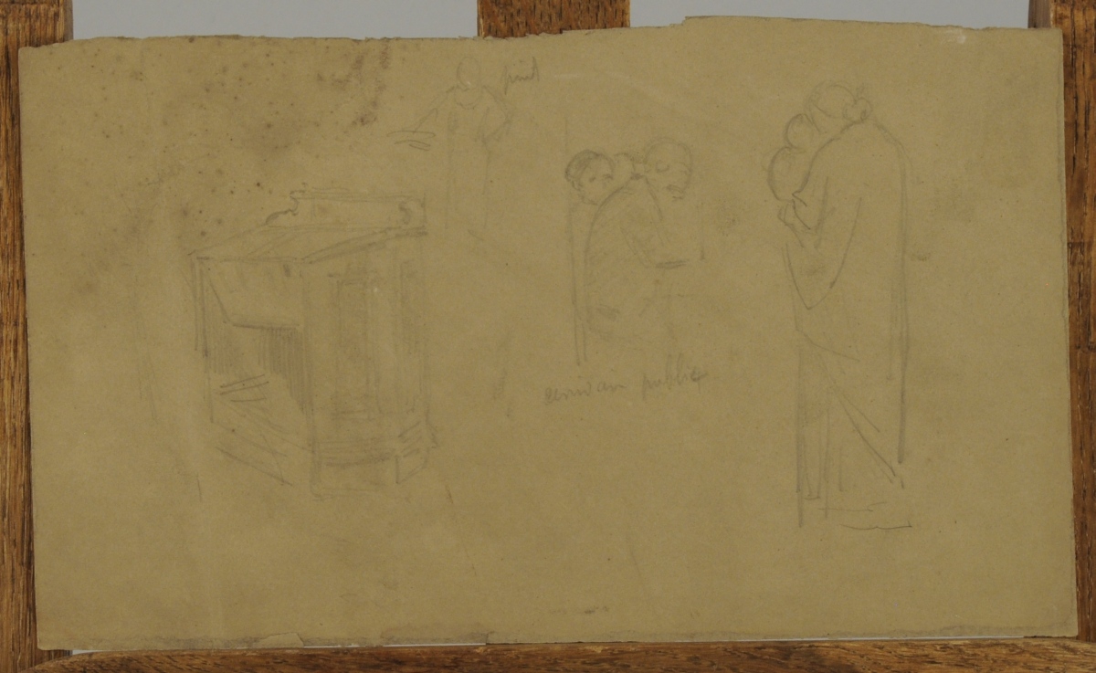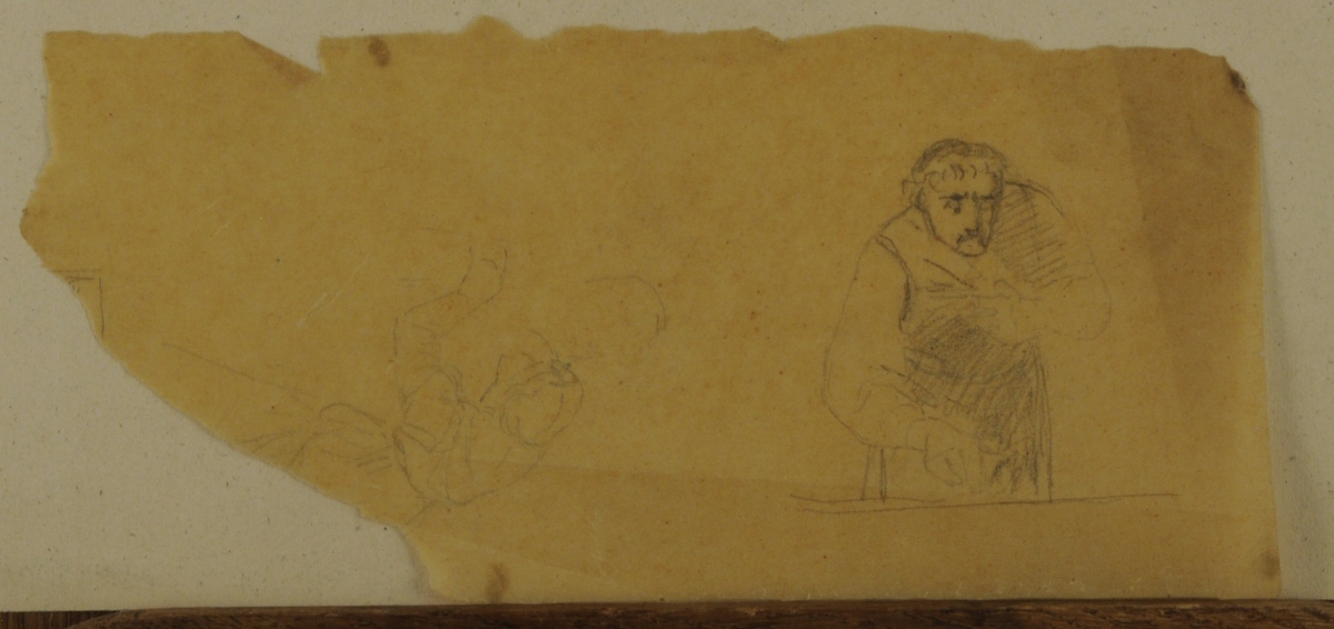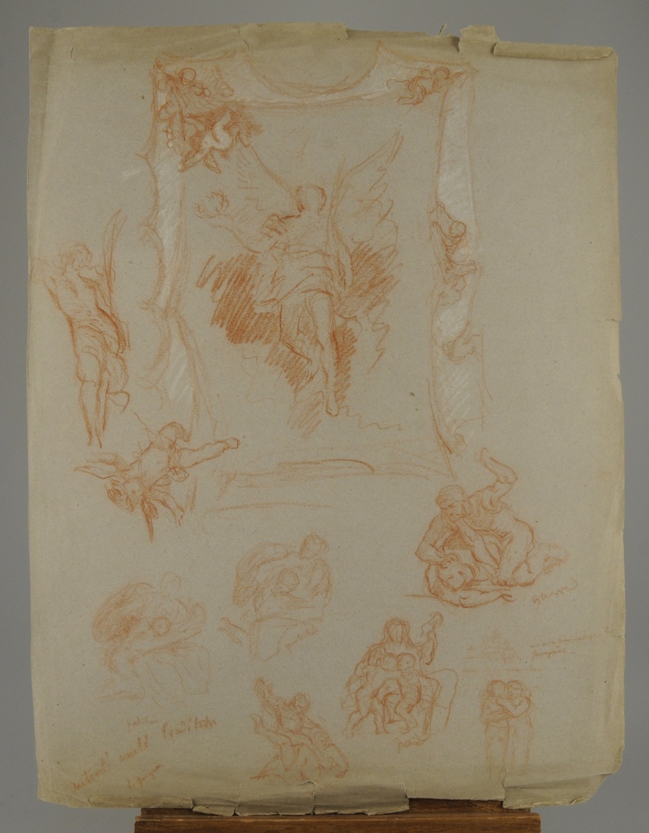 Joint : 9 ÉTUDES. 8 crayon sur calque et 1 crayon sur papier. 3 moyens formats, environ 30 x 25 et 6 petits formats, environ 20 x 15 cm. (papier plié, usures)