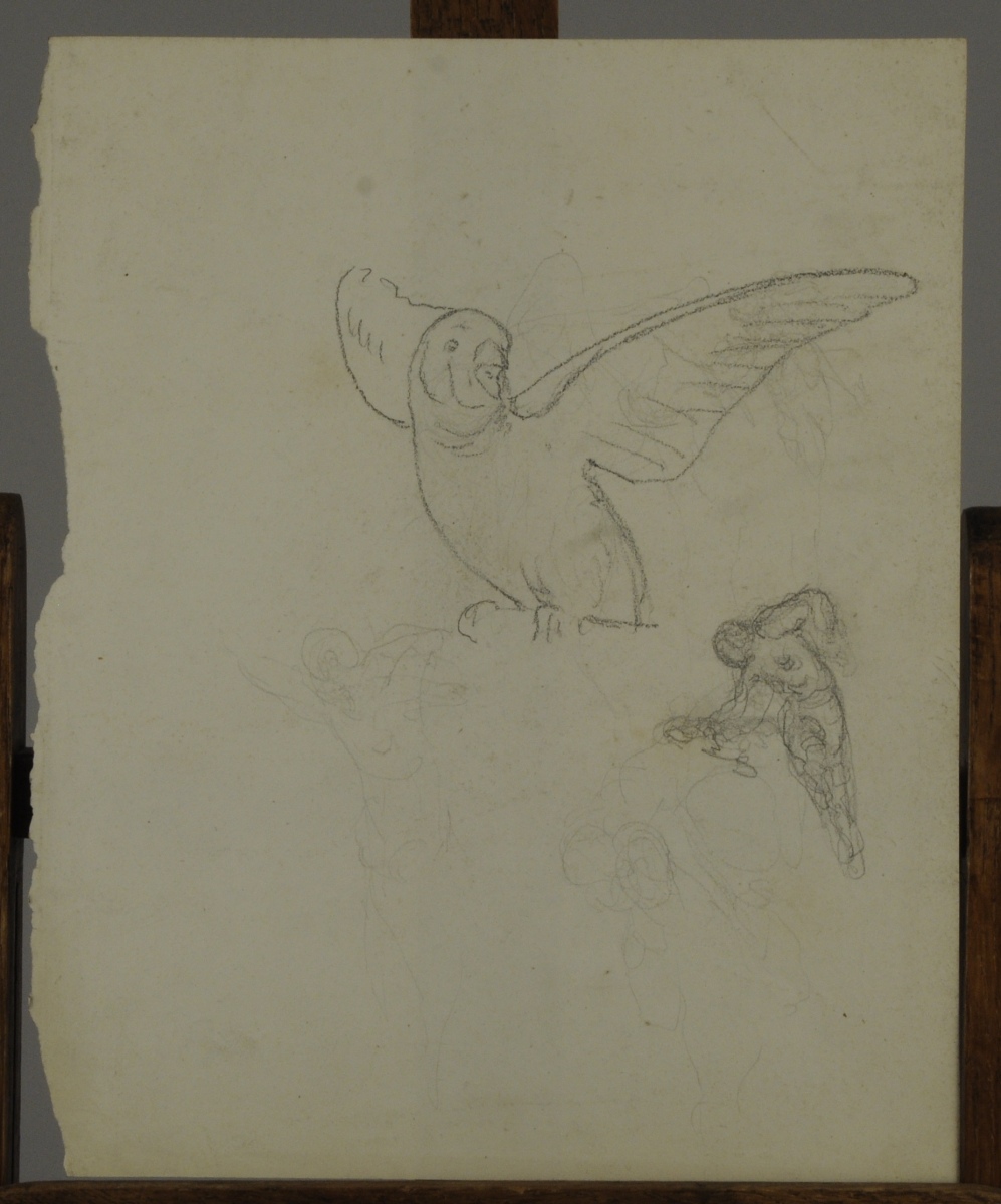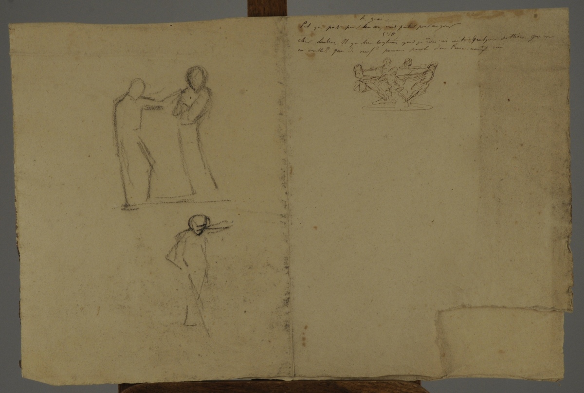 Études de jeune garçon et autres. 6 feuilles. 5 crayon noir et 1 sanguine sur papier, l'un annoté, titré et signé en haut à droite.