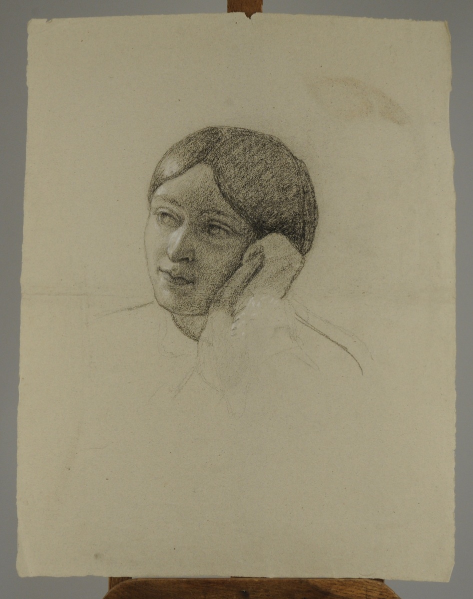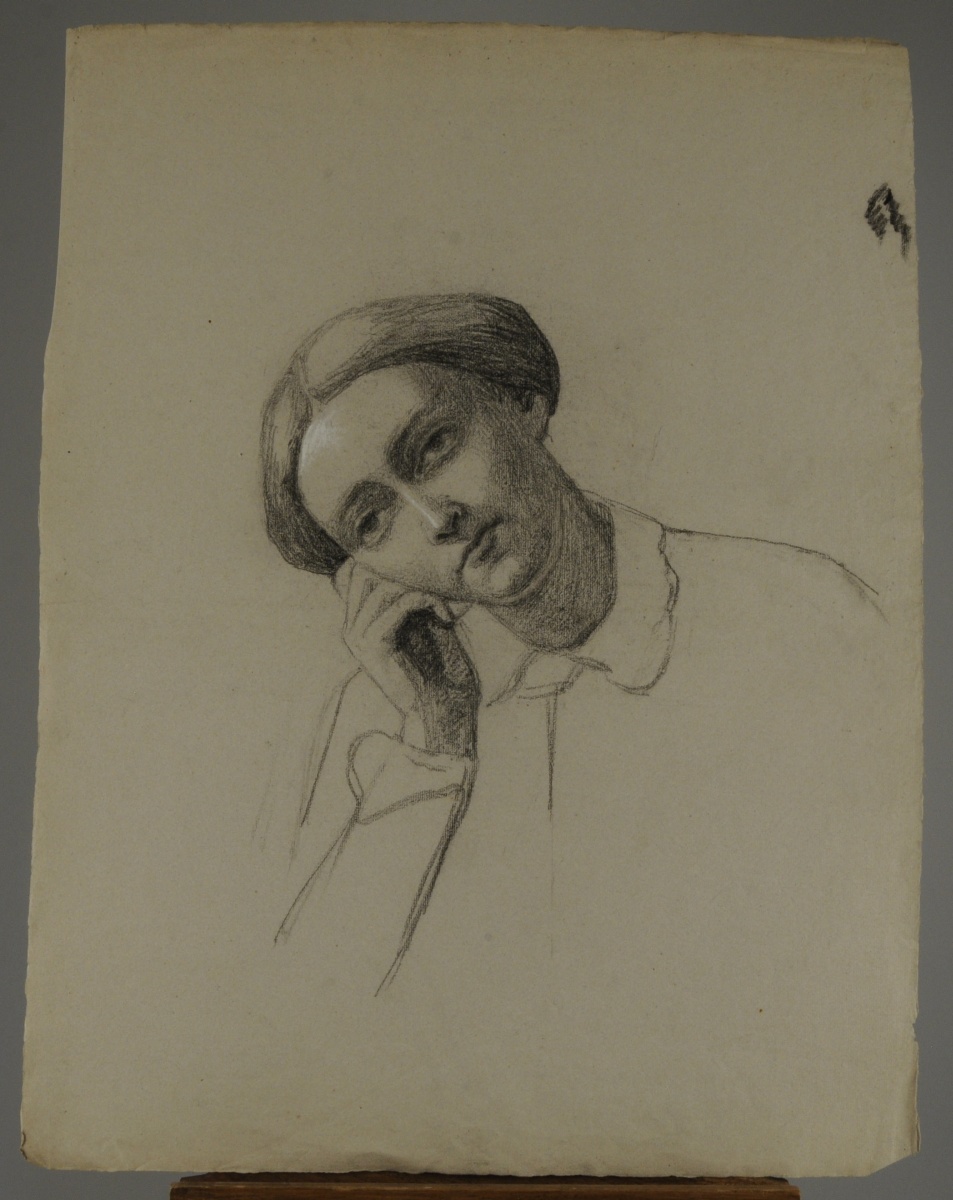 Études. 6 feuilles. Crayon noir et rehauts de craie blanche sur papier.