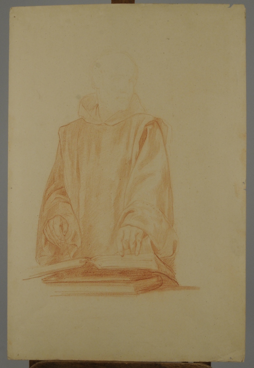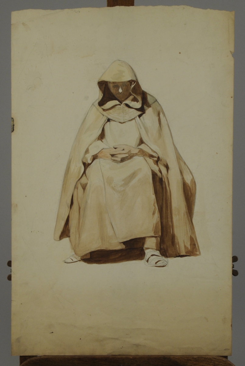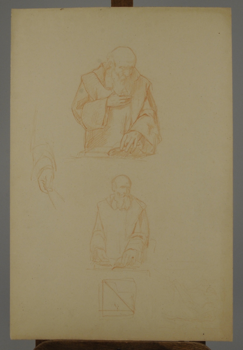 Études. 4 feuilles. 3 sanguines et 1 crayon et aquarelle sur papier.
