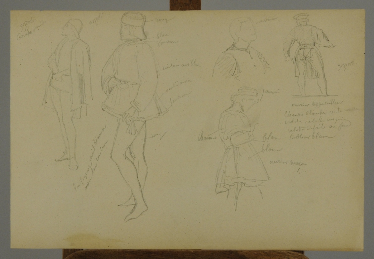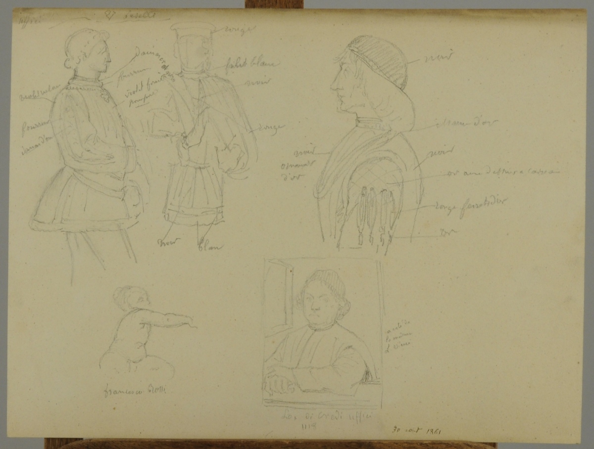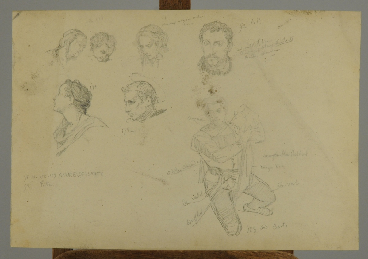 Études d'hommes et esquisses dans le goût de la Renaissance italienne, la plupart d'après Andrea del Sarto, d'autres d'après Titien.