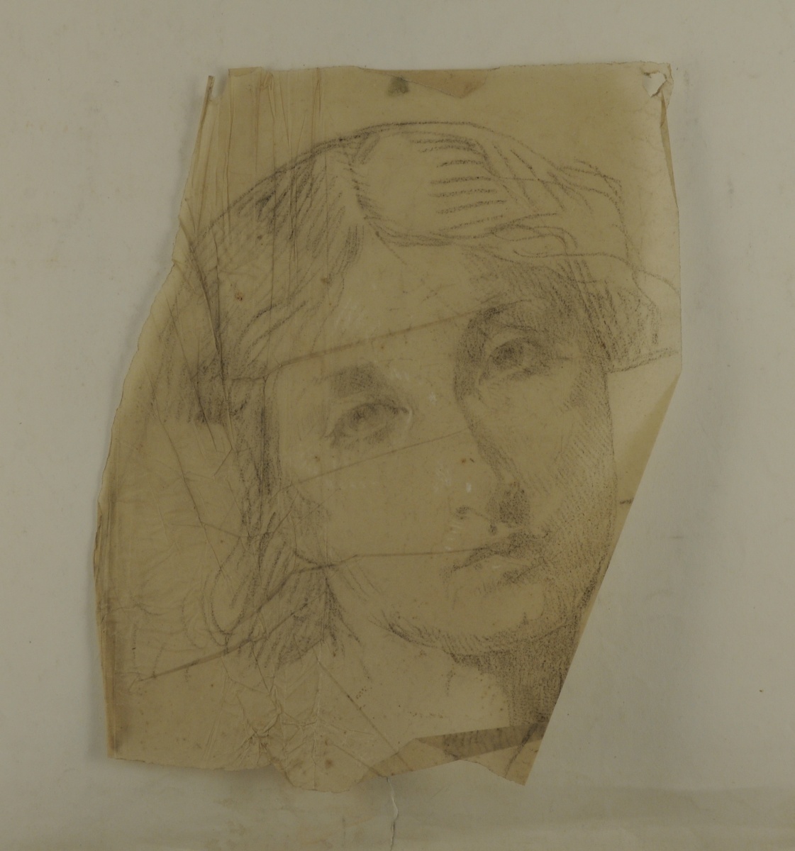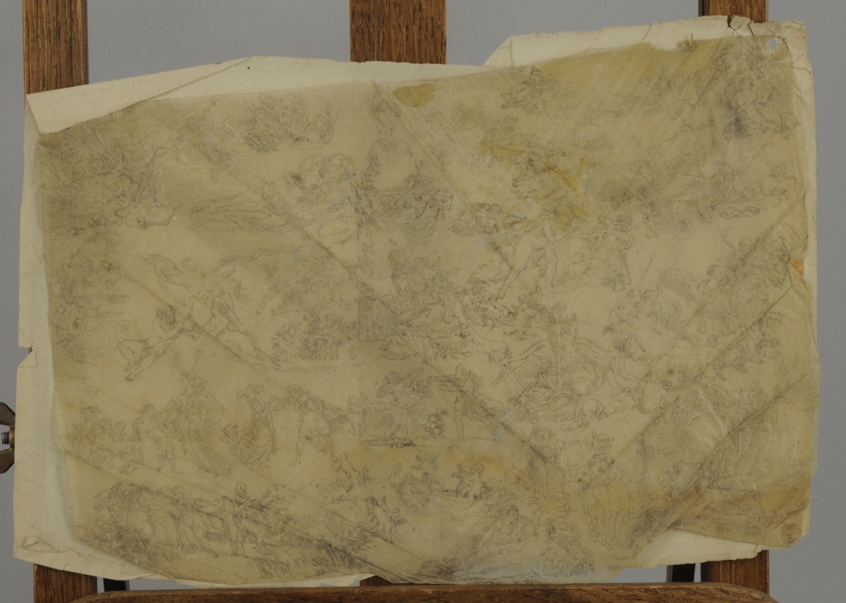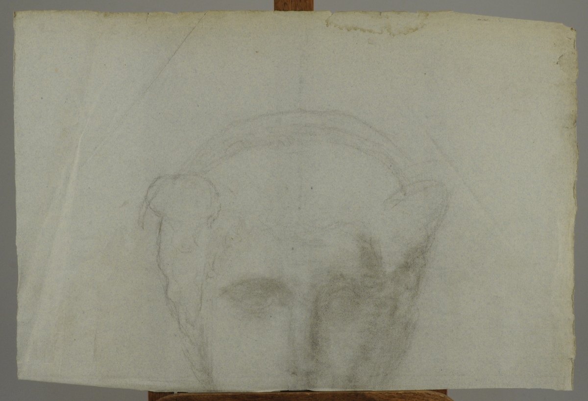 Études. 8 feuilles. Crayon, et 1 sanguine, sur papier et calque, l'un rehaussé de craie blanche.