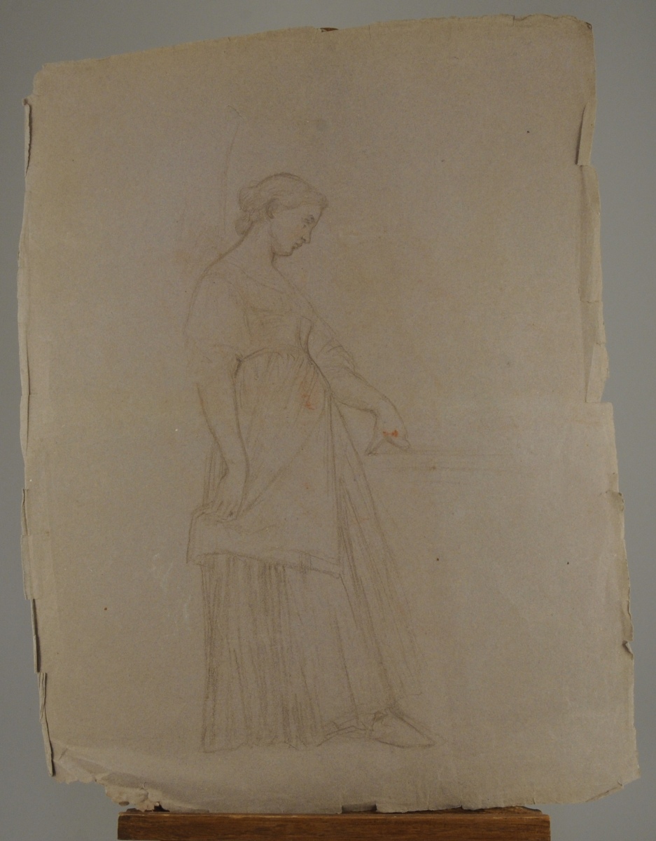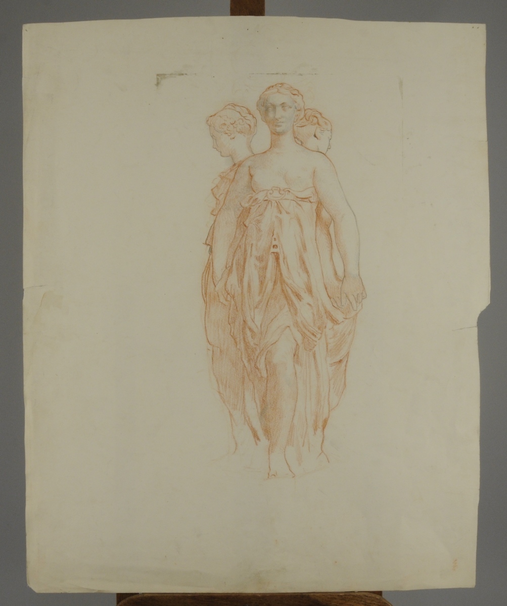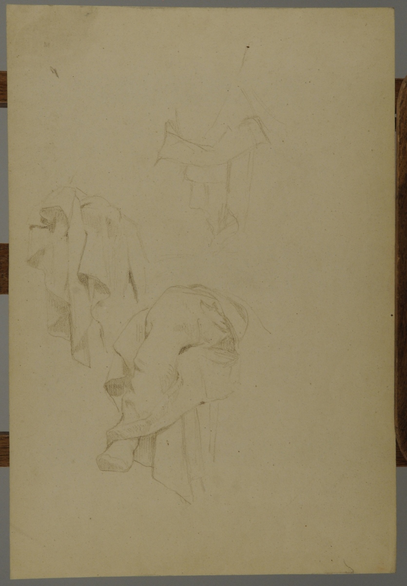 Études. 8 feuilles. Crayon, et 1 sanguine, sur papier et calque, l'un rehaussé de craie blanche.