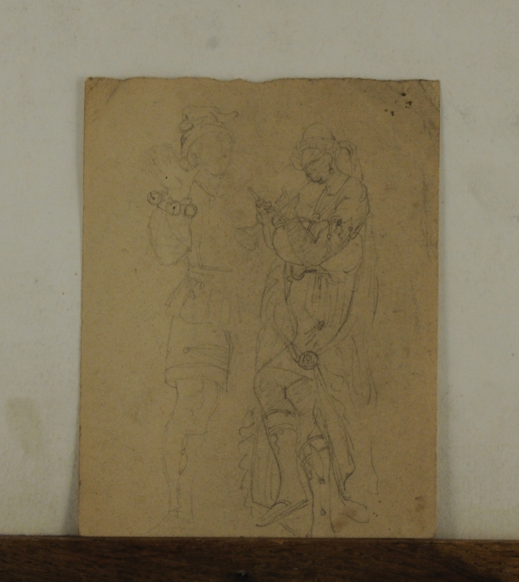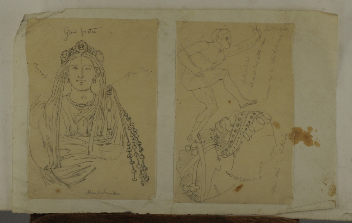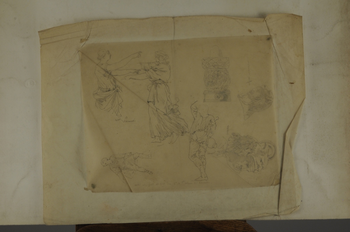 Joint : Homme vêtu d'un DRAPE à l'antique. Crayon sur calque, annoté. 29,5 x 21 cm. (papier plié)