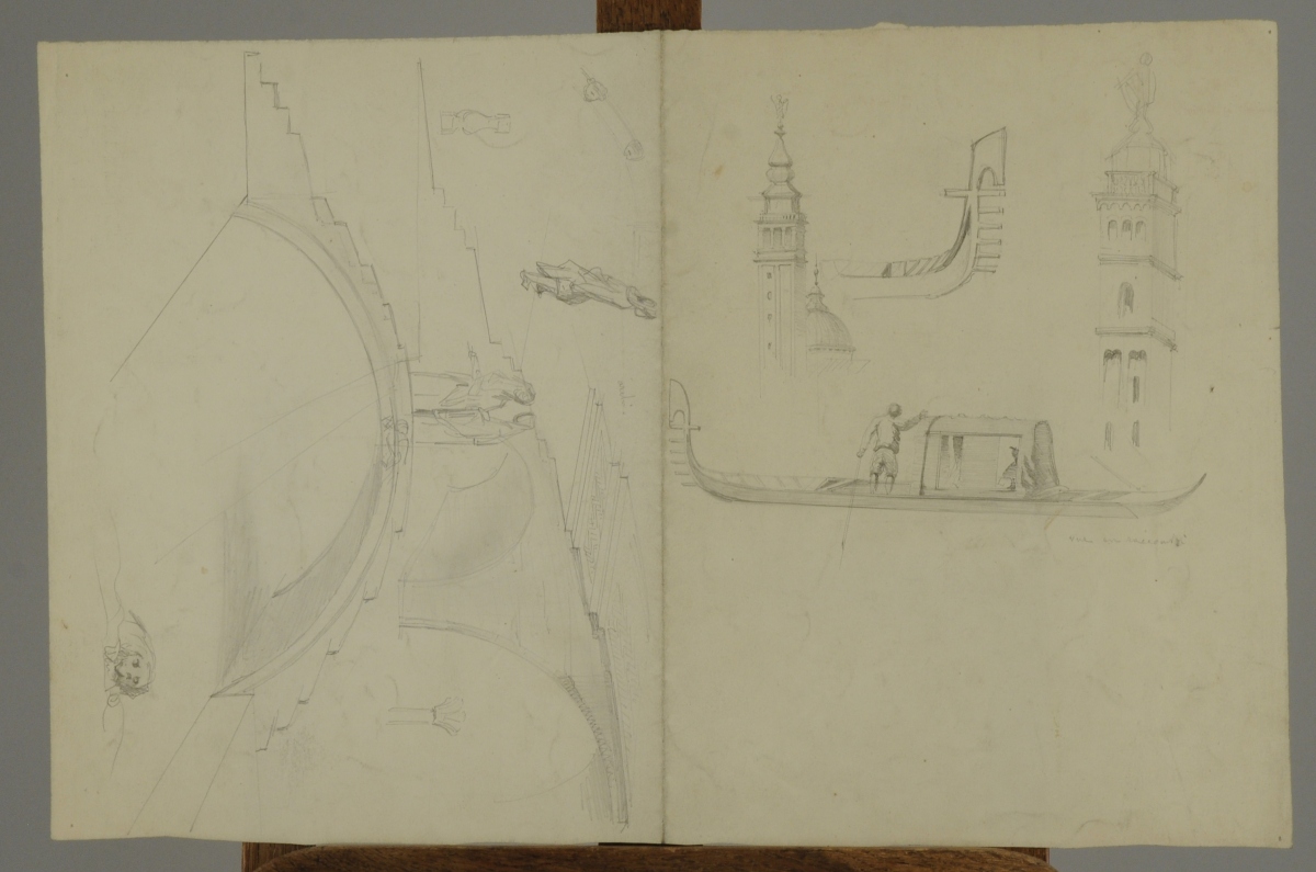 1 dessin de grand format, 31 x 46 cm. (feuille pliée en deux de 62 x 46 cm)