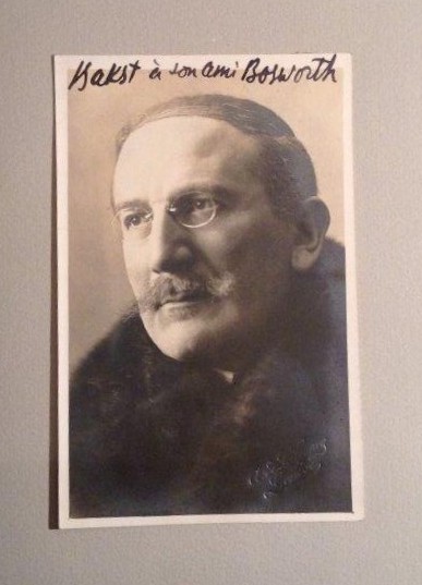 Est ajoutée une photographie de Léon Bakst, avec dédicace manuscrite "Bakst à son ami Bosworth". Bosworth, architecte attitré de John Rockefeller Junior, dessina, entre autres, les plans du Massachussets Institute of Technology.