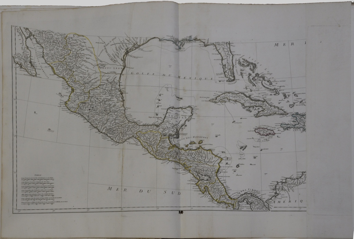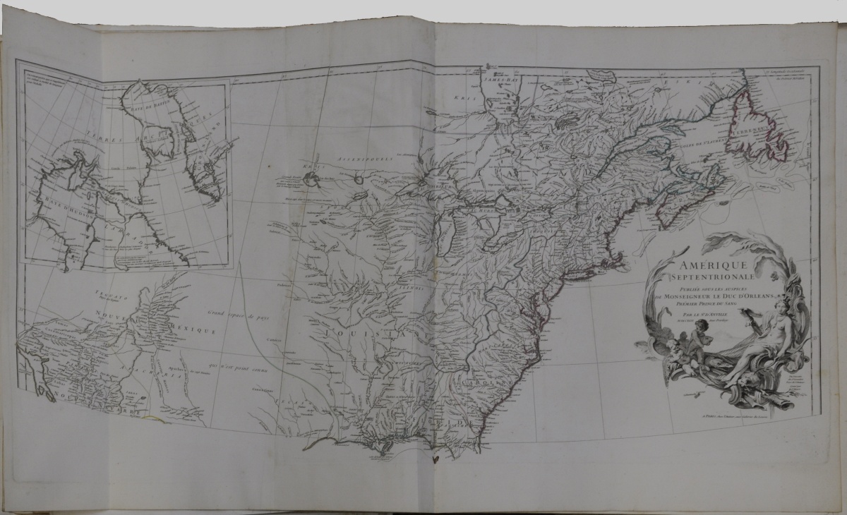 n° 31, 32, 33, 34, 35, 36, 37, 38, 39, 40. Amérique Septentrionale en 2 parties (1746), Amérique Méridionale en 2 parties (1748), Golfe du Mexique ; Canada, Louisiane et Terres Angloises (1755) ; Carte de la Louisiane (1752) ; Sud de la Louisiane ; Nouvelle France ; Le Fleuve Saint Laurent. Soit 10 cartes doubles, dont 4 avec légers rehauts de gouache. (Tache de moissure modérée au fond des feuillets ; galerie de ver affectant quelque peu 5 des planches).