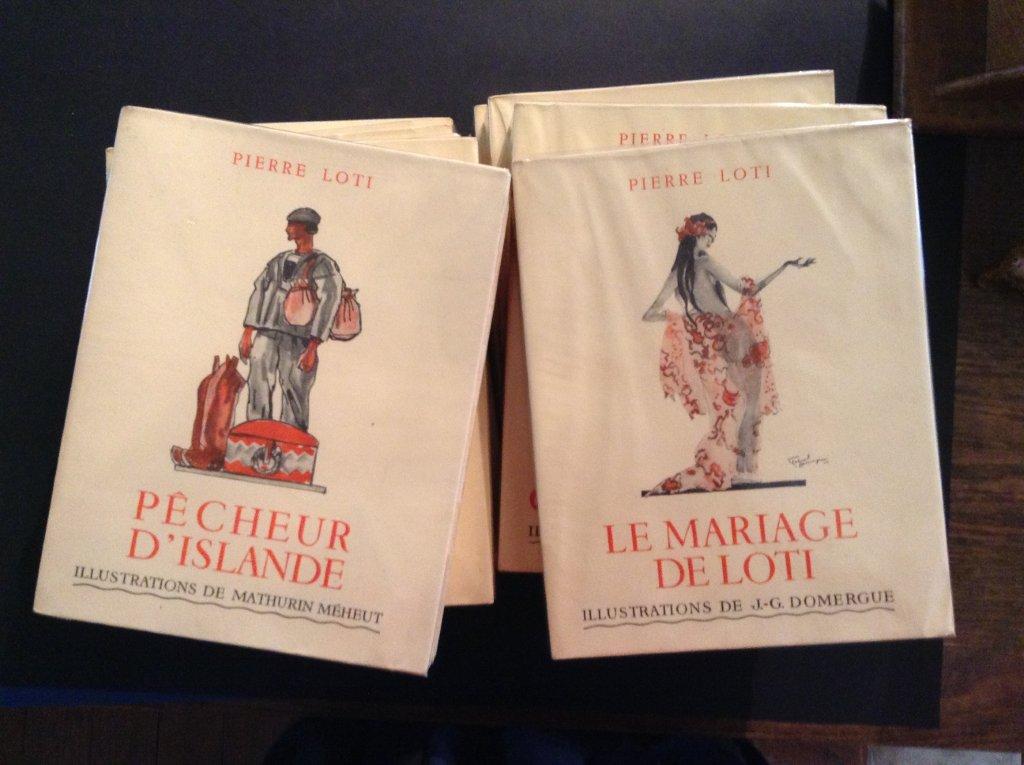 Aziyadé, Ramuntcho, Madame Chrysanthème, Matelot, Pêcheur d'Islande, Le Roman d'un Spahi etc... Illustrés par Mathurin Méheut, Charles Fouqueray, Sylvain Sauvage, J.G. Domergue, etc... et imprimés sur vélin à la forme.