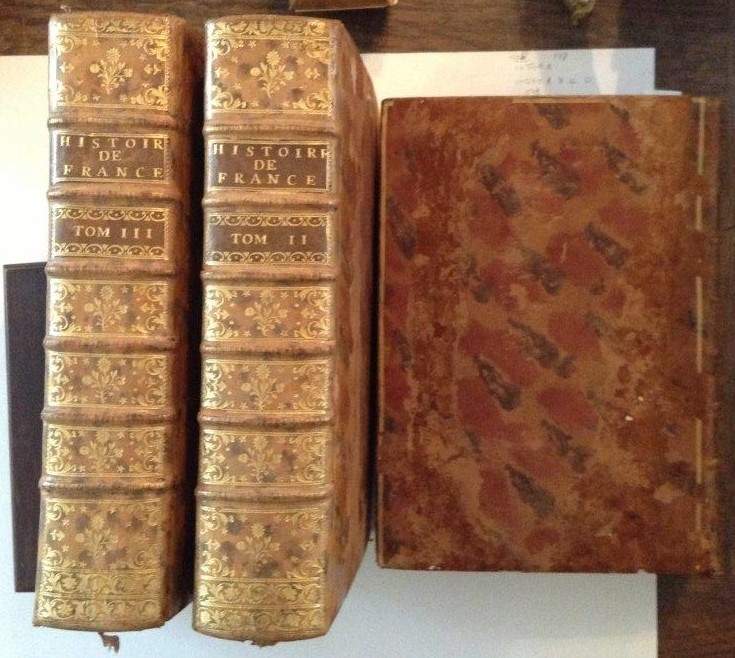 3 forts volumes in-folio, plein veau marbré, triple filet d'encadrement. Reliure établie vers 1750. (Desquamations sur les plats. Salissures dans la marge supérieure des pages 30 à 36 du tome I. Quelques rousseurs. Le dernier feuillet du cahier intercalé dans le tome III, entre 2 pages numérotées 683, a été doublé ; le feuillet suivant, qui présentait des défauts d'impression, a été complété d'une écriture ancienne).
