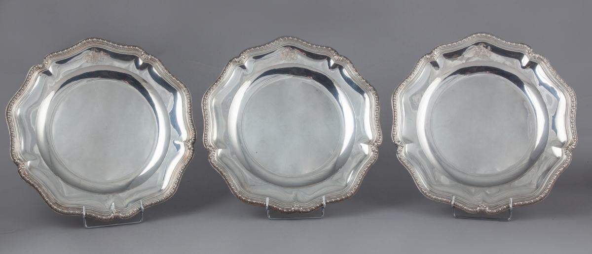 Plats ronds : Diam. 30 cm. Poids total : 2.545 g.