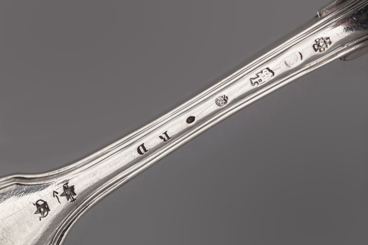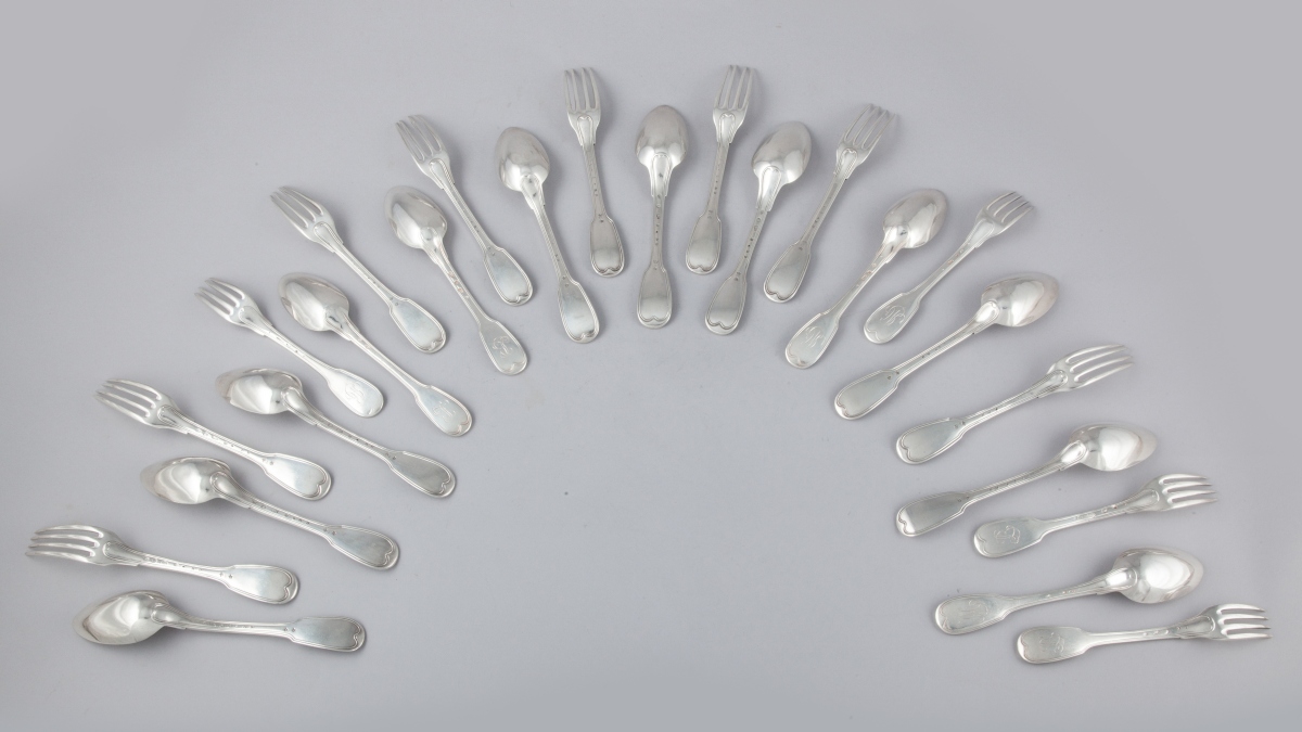 Série de 12 COUVERTS en argent, modèle à filet contour.