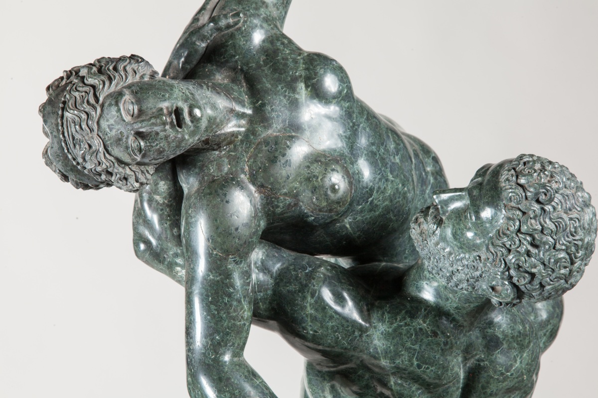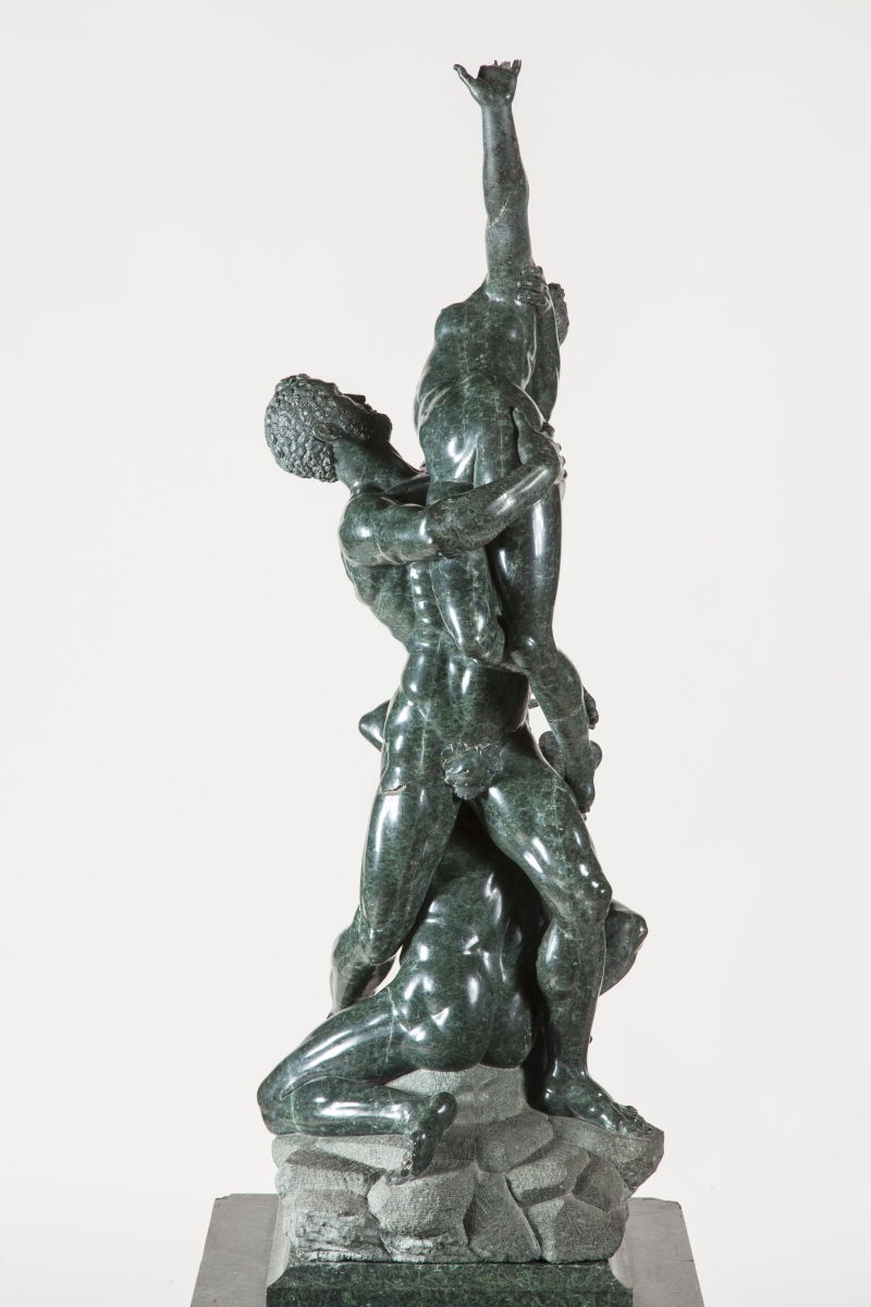 Socle en marbre vert à face sculptée représentant l'Enlèvement des Sabines.